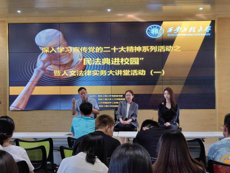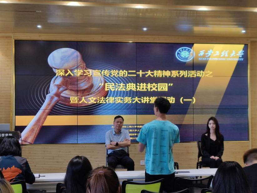 为深入学习宣传贯彻党的二十大精神,落实省普法办、省司法厅《关于转发2023年美好生活·民法典相伴主题宣传方案》通知要求,加强民法典普法工作,提高师生法律意识,营造文明、平安、和谐的校园育人环境,5月24日,由党委宣传部和人文学院党委联合举办的“民法典进校园”系列活动在临潼校区举行。