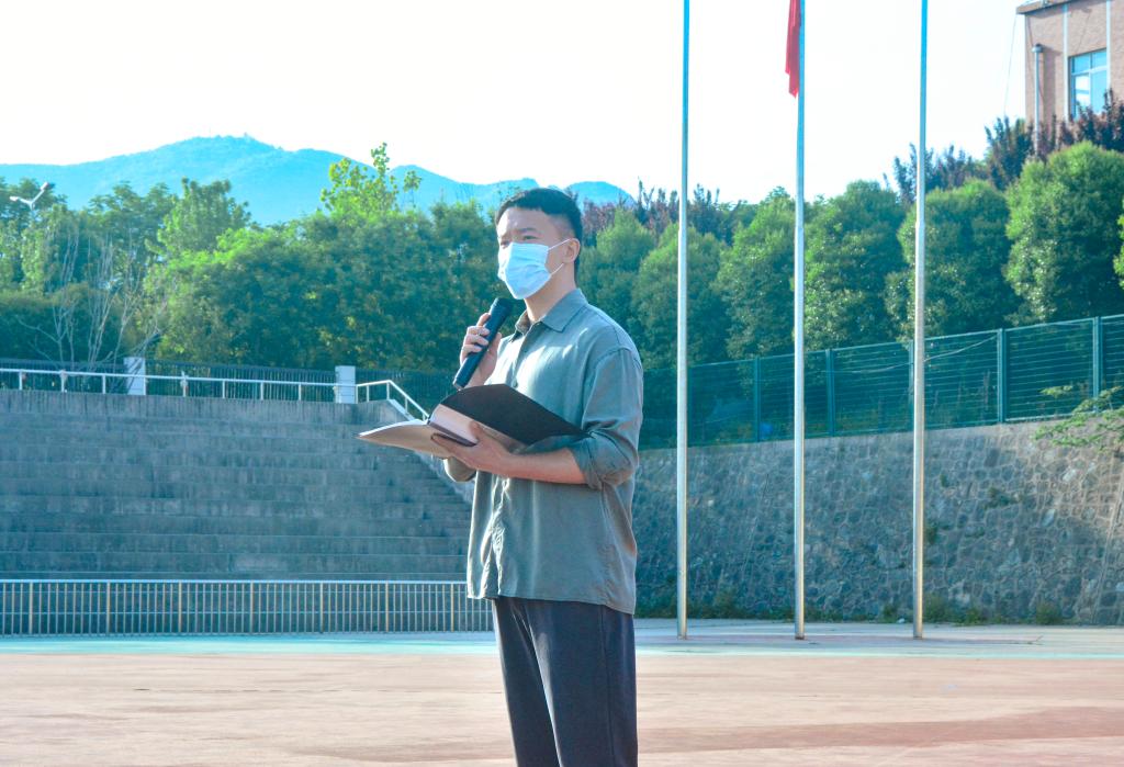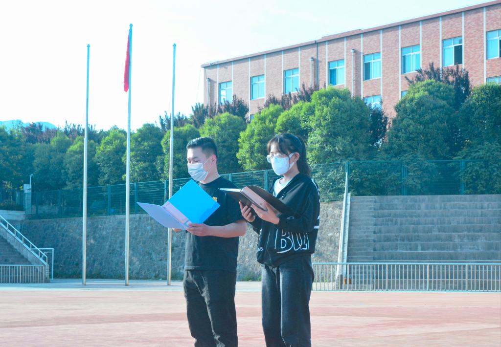 学生代表2022级英语01班吴俊杰和2022级汉语言国际教育01班杨启凡进行国旗下发言。在新时代背景下,他们号召同学们要铭记党的奋斗历程,不忘初心、牢记使命。强国有我,青年一代应立志做大事,永葆一颗初心。