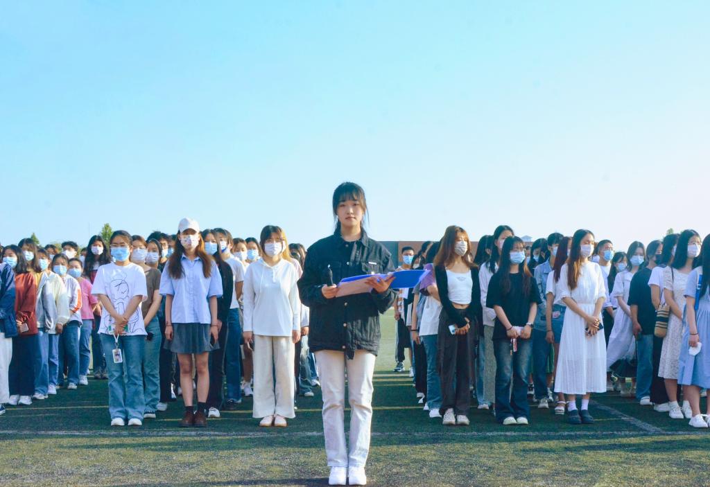 5月15日,人文学院在临潼校区东环体育场举行了升旗仪式。学院团总支书记刘杨扬,2021级、2022级全体学生参加了本次升旗仪式,2022级英语01班夏舒宇主持仪式。