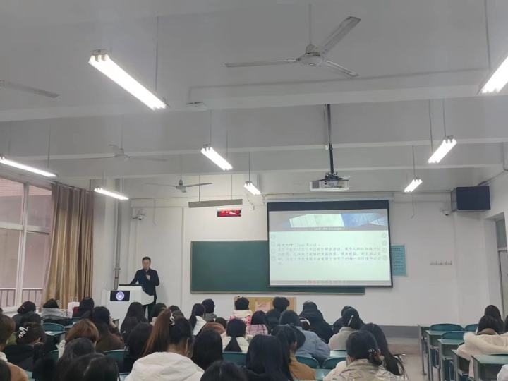 11月下旬,学院团委特邀米兰中国2015届毕业生,外国语言学及应用语言学专业硕士,陕西巨微图书文化传播有限公司英语命题研究组专家成员薄艳丽,在教学楼面向2023级英语团支部学生开展了线下讲座。
