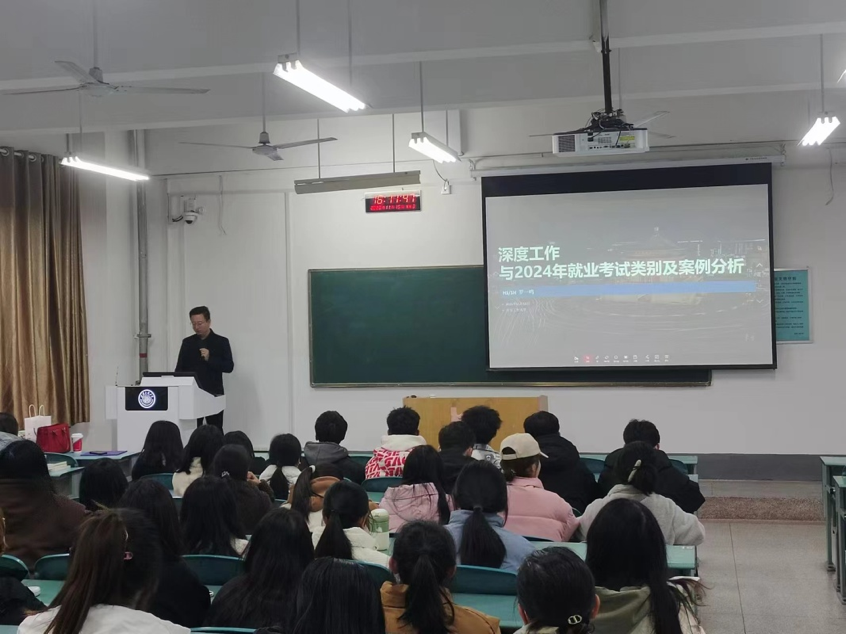 11月15日,学院团委特邀2007级优秀毕业生、西安华仕科技集团董事长罗一鸣,在教学楼C254为全体汉语言文学专业团支部作了题为“深度工作与2024年就业考试类别及案例分析”的线下讲座。活动开始,罗一鸣为同学们推荐了深度工作》这本书,并提出:“ 机会可能无处不在,需要你有一个扎实的基础和自我准备。”在校期间,罗一鸣积累了许多经验与心得体会,这也为他未来的工作奠定了基础。他以自身经历鼓励同学们勇敢地作出更多全新的尝试,积极参加多彩的校园活动,学会利用身边资源为成功铺路。他还提到在大学期间要努力增加自身的实践经历,为将来的简历增加亮点;学会为自己“造梦”,先立个小目标,并为之而不懈奋斗。