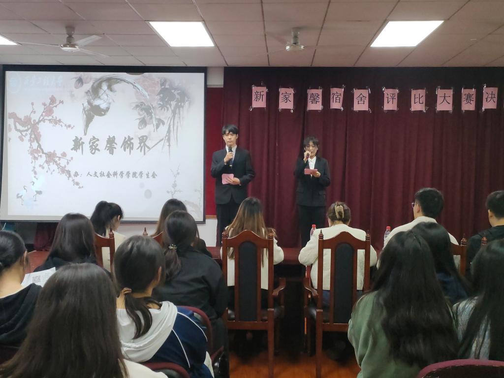 为加强宿舍文明建设,引领健康,整洁,舒适,和谐的宿舍文化,展现当代大学生良好精神风貌,人文学院于10月30日晚19:00在模拟法庭举办“新家馨”宿舍评比大赛决赛。人文学院辅导员刘杨扬、王菲及2023级本科生参加此次活动。