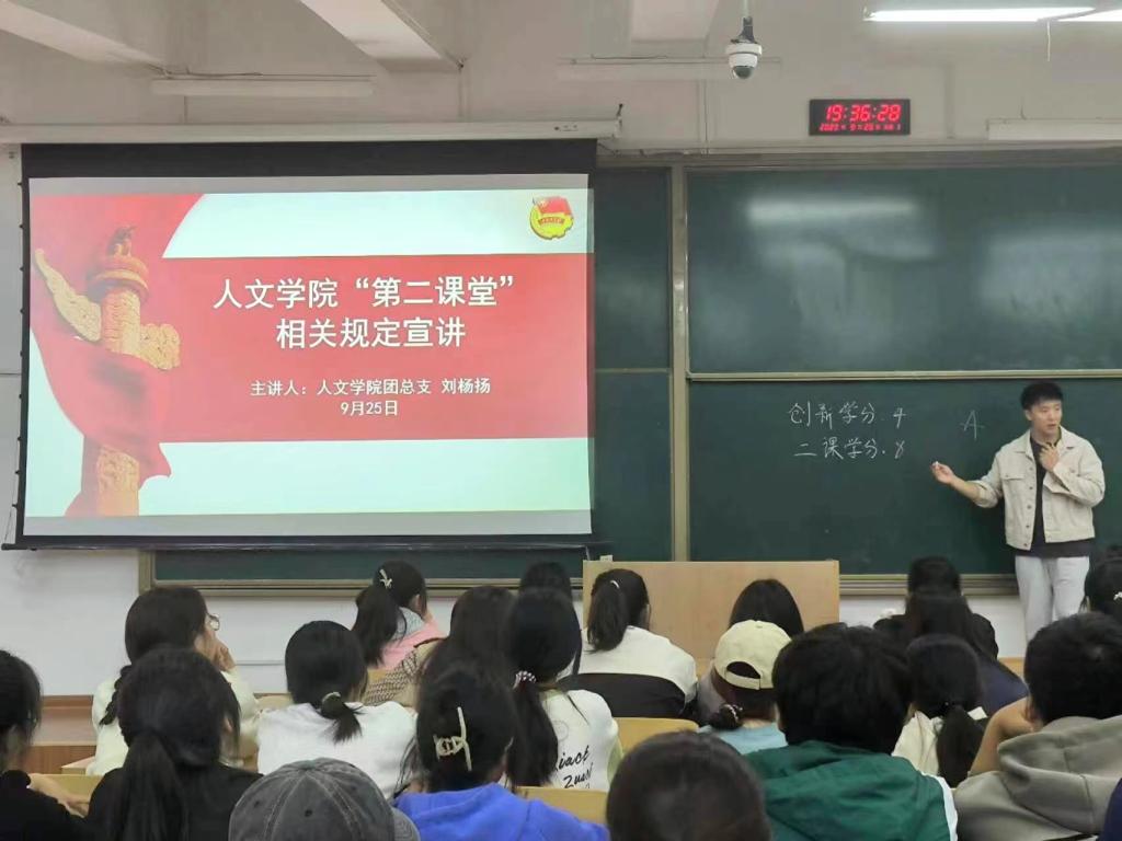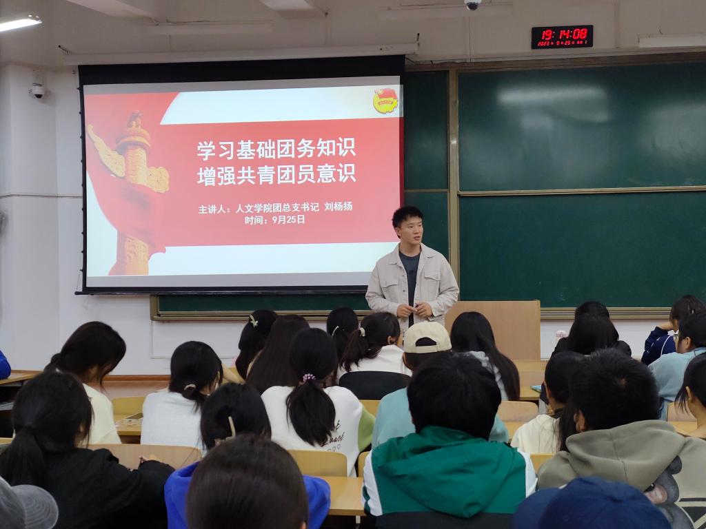 为引导广大团员青年坚定听党话跟党走,深入学习宣传贯彻党的二十大精神,进一步加强人文学子团员意识,更好地引领青年学生成长为堪当民族复兴重任的时代新人。人文学院于9月25日在B-133教室开展“学习基础团务组织,增强共青团员意识”主题团课。本次团课由人文学院团总支书记刘杨扬主讲,人文学院2023级本科、研究生班团支部成员及入团积极分子参加。