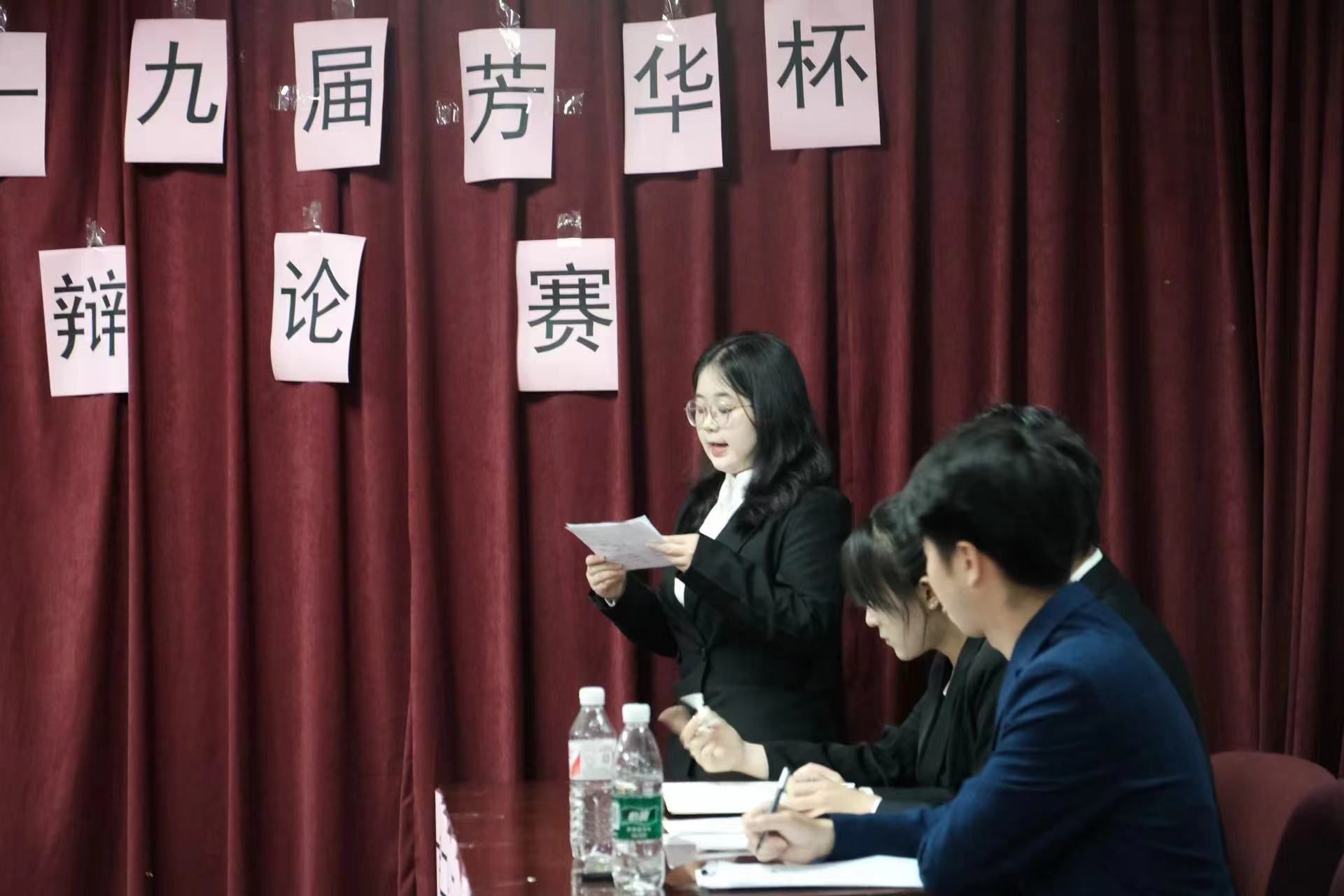 习近平主席在全国教育大会上指出,应当培养德智体美劳全面发展的人才,因此在高校内开展丰富多彩的竞赛活动必不可少。为营造全学院浓厚的思辩氛围,培养人文学子的思维能力和辩论技巧,进一步提升其逻辑思维、思辩才能、语言表达能力,人文学院于5月10号晚在人文楼模拟法庭举办第十九届“芳华杯”辩论赛。