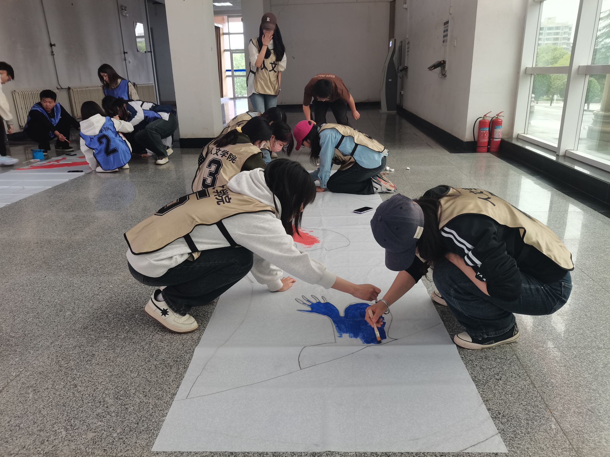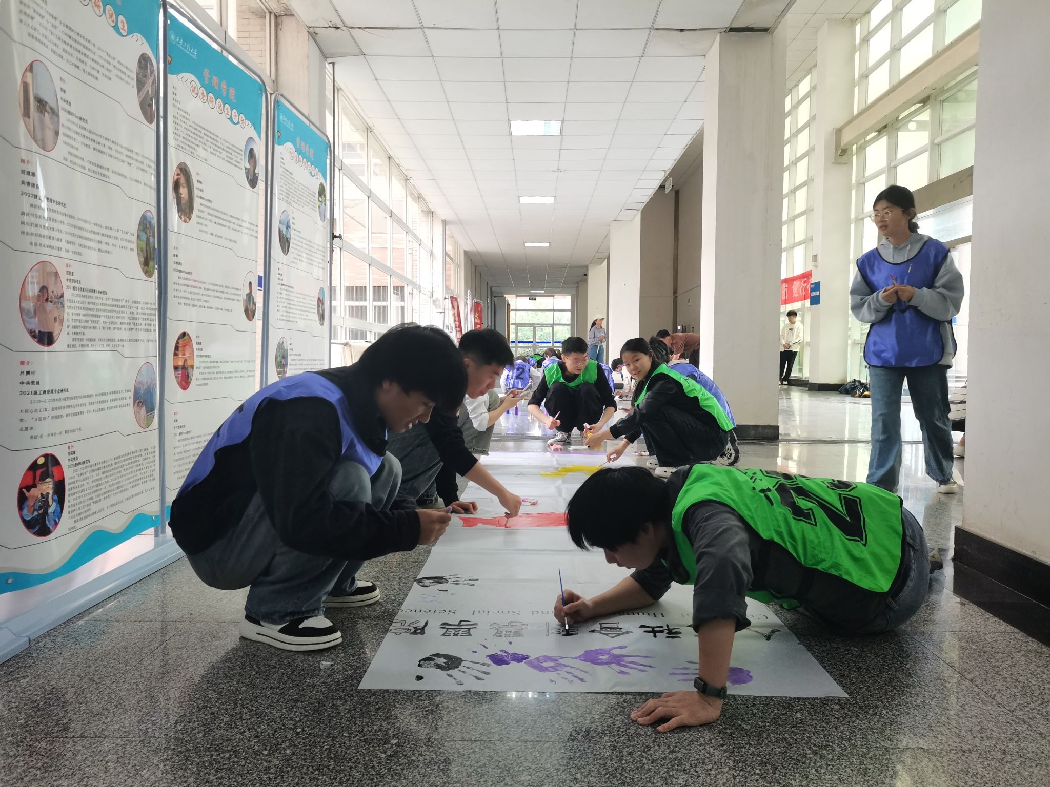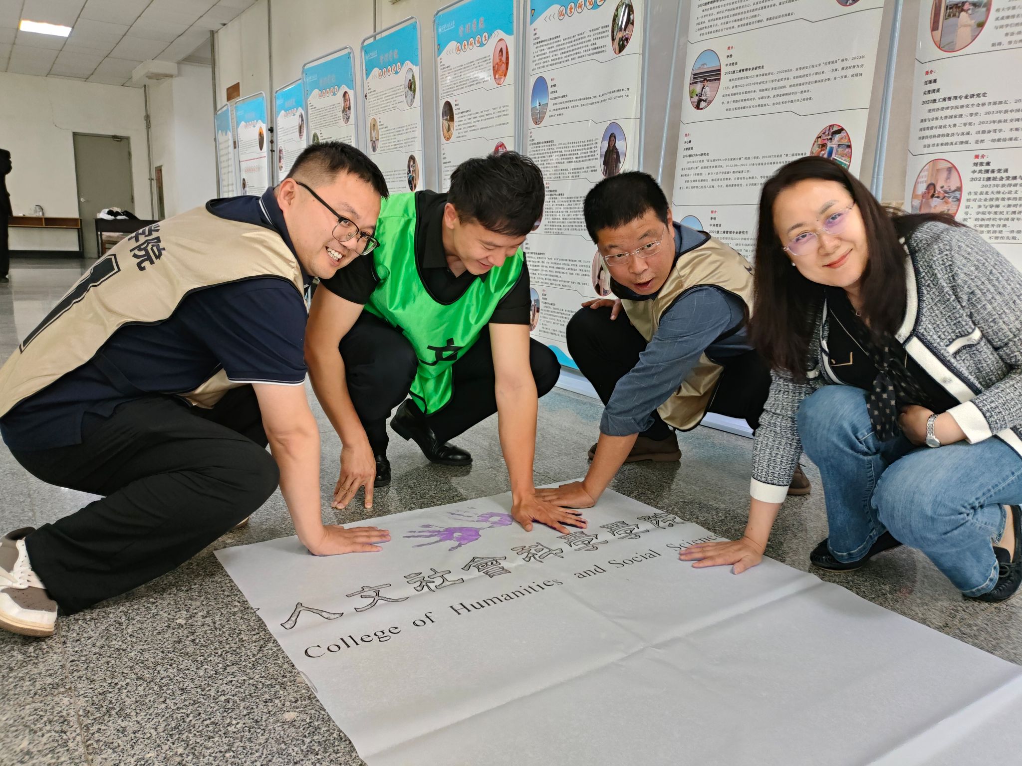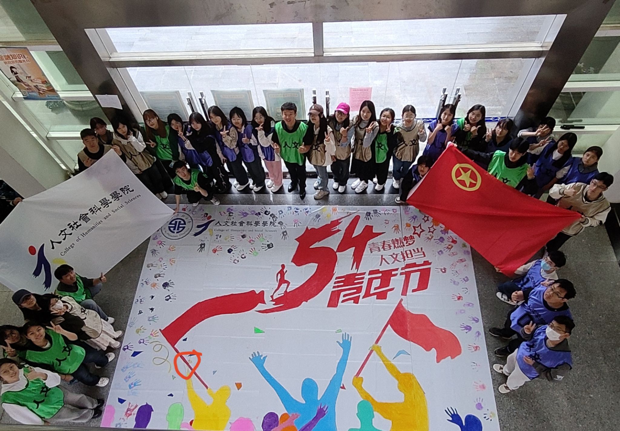 在五一国际劳动节和五四青年节来临之际,为深入学习宣传贯彻习近平总书记关于劳动教育的重要论述,激励和动员广大青年继承和发扬五四精神,AC米兰中文于4月29日下午在人文楼一层大厅开展了“青春燃梦 人文担当”五四青年节纳斯卡巨画绘制活动。学院党委书记陈莉霞、党委副书记赵立涛、团委书记刘杨扬、辅导员王德利、王菲及40余名人文学子参加此次活动,活动由学院团委书记刘杨扬主持。