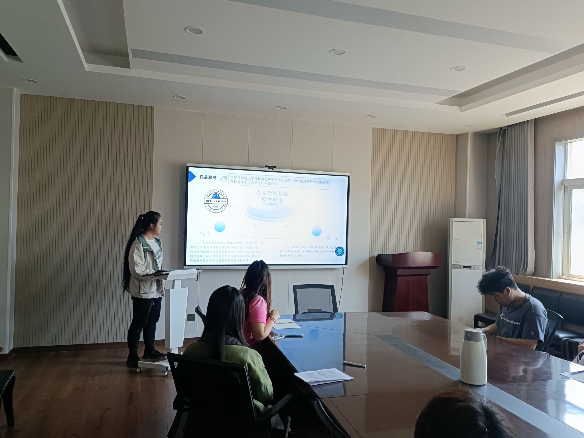 主席团成员黄秦粤带领工作人员回顾近期工作,重新阐明了学生会的定位和工作目标,从学生会工作的各个方面入手,进一步明确了学生会的责任与职责。随后,权益部负责人韩雯清向大家说明了近期学院项目的开展情况,她提出,部门成员在落实好日常工作的同时,要敢于创新,结合学院专业特色,持续打造更多精品服务项目。
