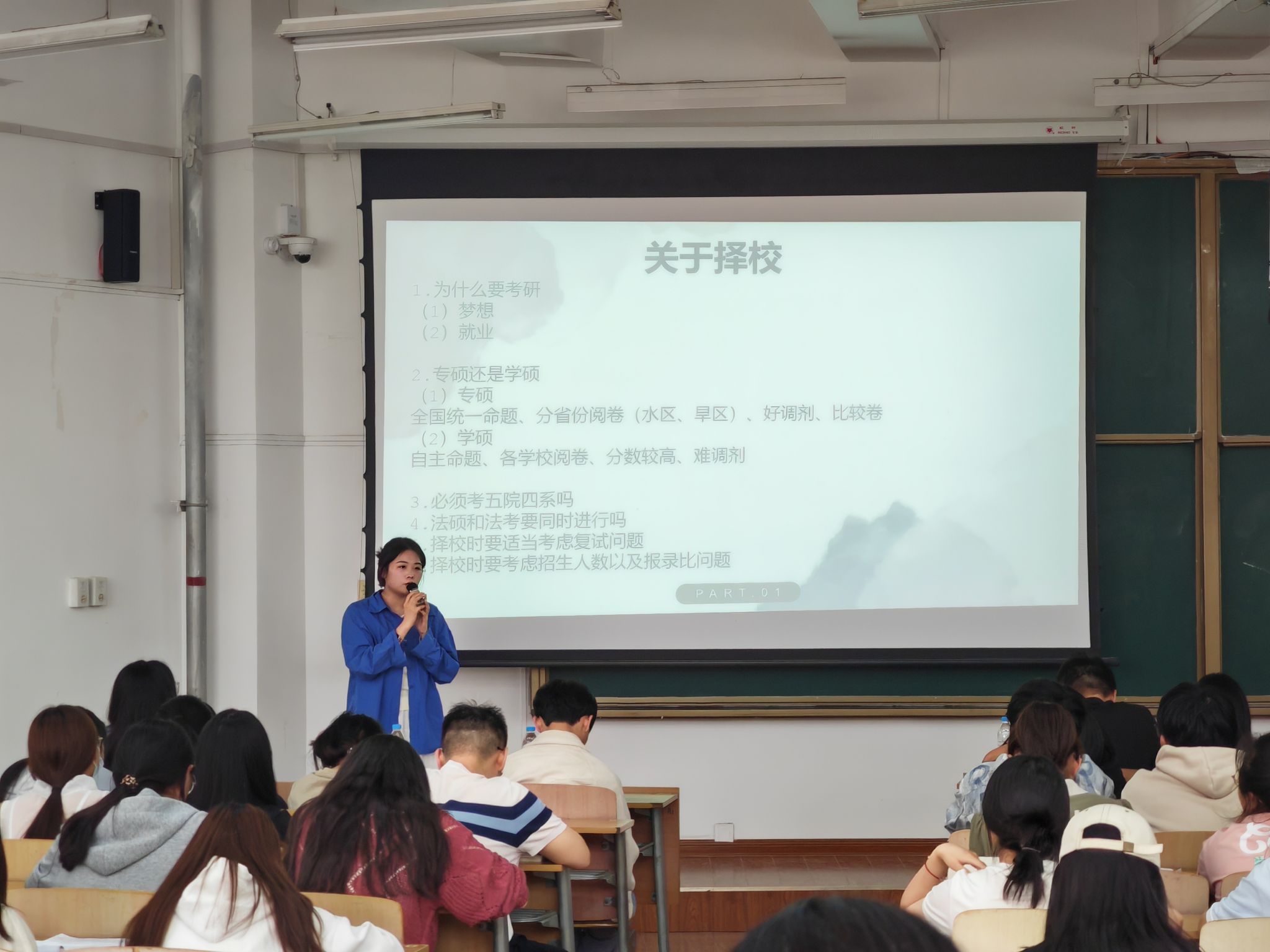 王德利总结了人文学院历年的考研情况,对学院在考研领域取得的优异成绩表示祝贺,指出当前的考研形势依然严峻,竞争依然激烈,也希望有意考研的同学们要根据当前形势,提前做好规划准备,向学长学姐取经学习。