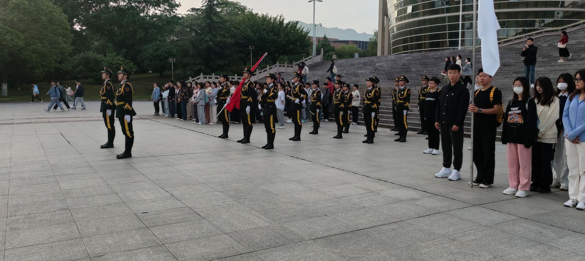 为深入学习习近平新时代中国特色社会主义思想,全面贯彻党的教育方针,进一步厚植师生的爱国情怀,在4月22日这个既是世界地球日又是世界法律日的特殊日子里,人文学院在图书馆前举行第九周升旗仪式。学院团委书记刘杨扬及2022级、2023级全体本科生参加此次升旗仪式。本次升旗仪式由国旗护卫队秦瑶主持。