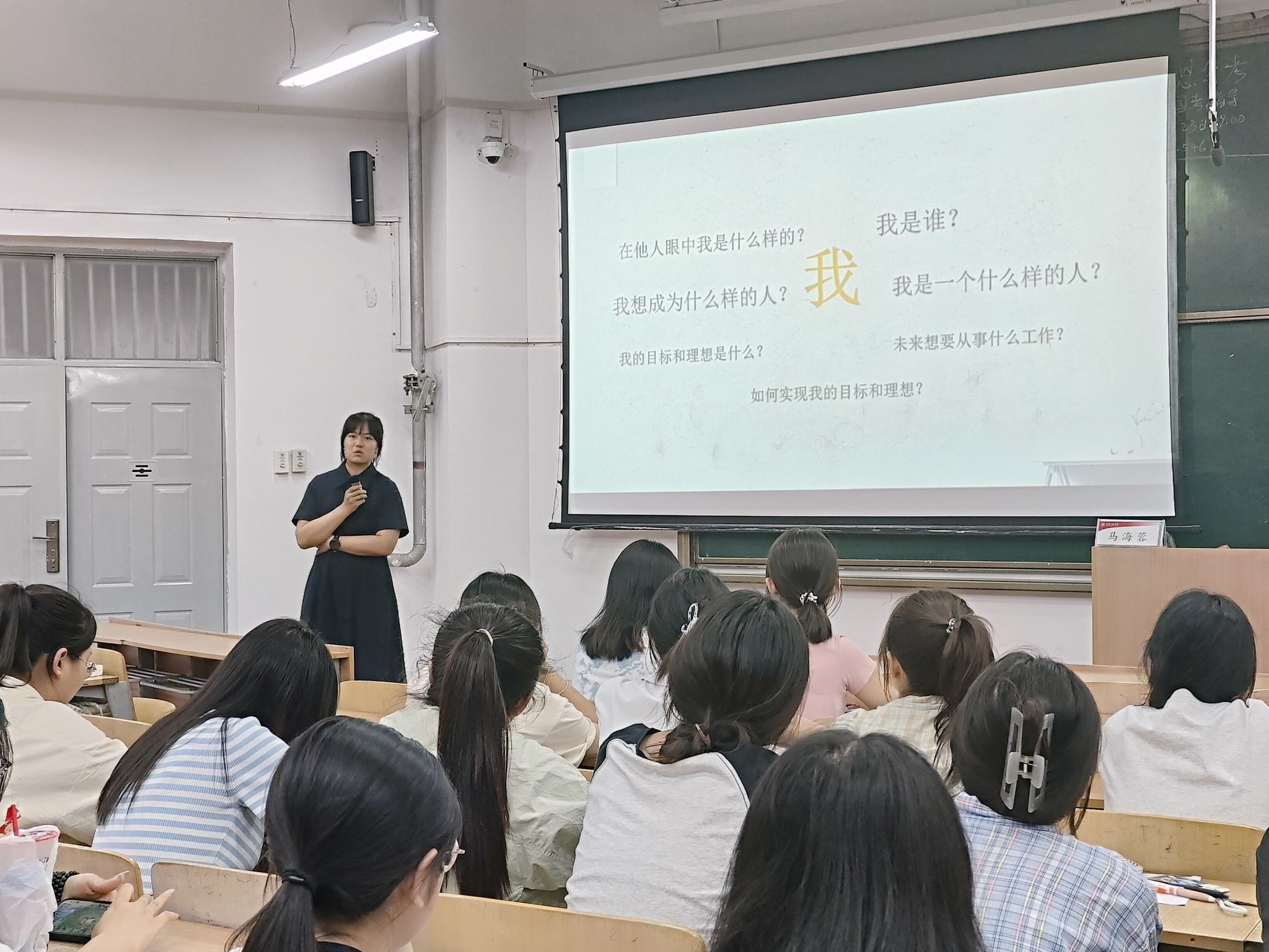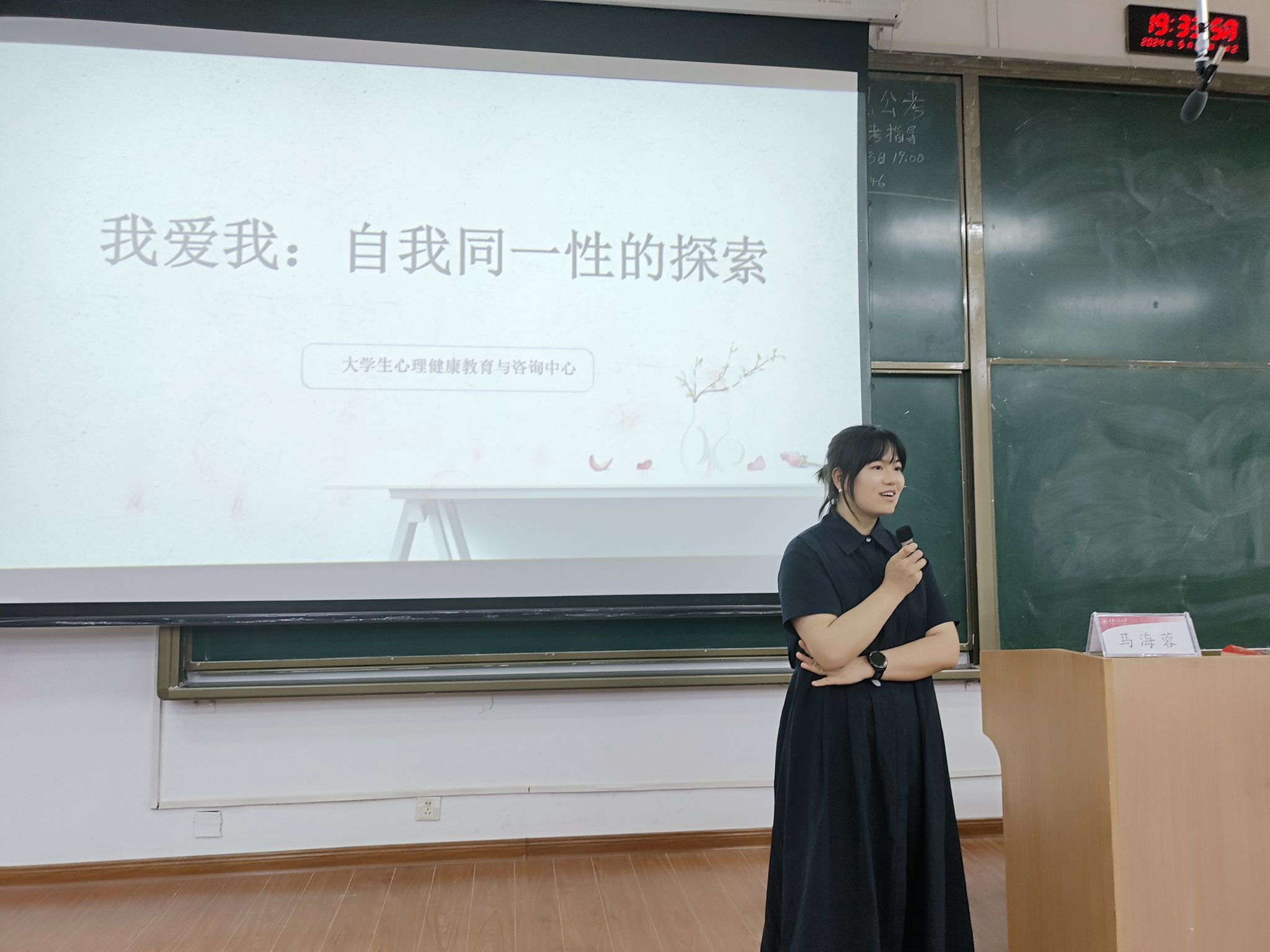 5 月 21 日晚,AC米兰中文在教学楼B-133举办“我爱我:自我同一性探索”心理健康专题讲座,2023级全体本科生,2022级、2021级部分本科生参与此次活动。本次活动特邀我校心理健康中心教师马海蓉主讲,我院辅导员王菲主持。