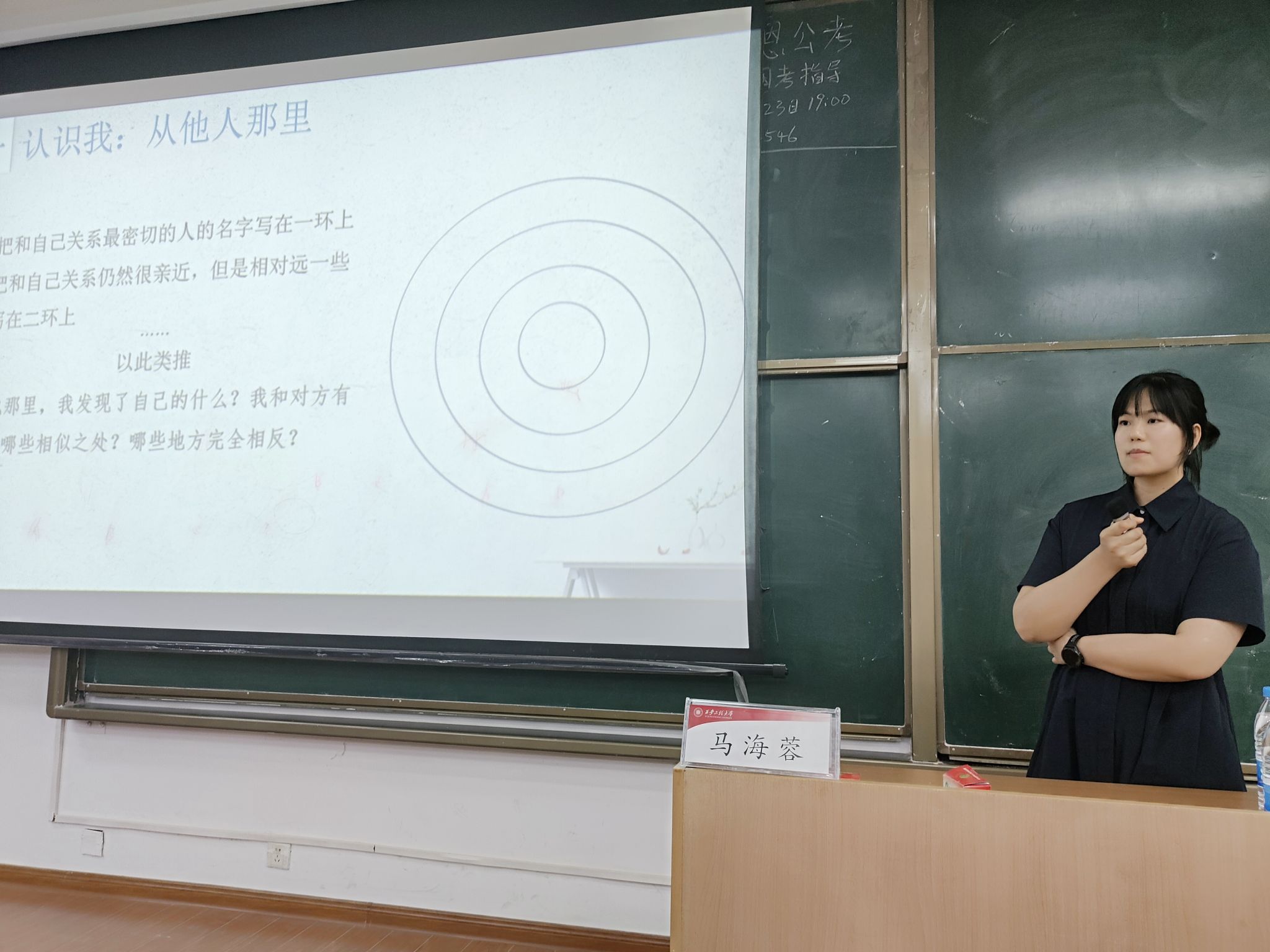 马海蓉通过三个部分带领学生学习心理知识。第一如何“认识我”,通过有趣的心理测试和互动游戏,帮助同学们了解自己的性格特点、兴趣爱好和价值观;第二如何“感受我”,引导学生关注自己的内心感受,学会表达自己的情感和需求;第三如何“悦纳我”,鼓励同学们接受自己的不完美,树立自信心,积极面对生活中的挑战。讲座过程中同学们积极发言,提出疑问。马海蓉就同学们普遍关注的问题进行讲解,引导学生积极探索自我。