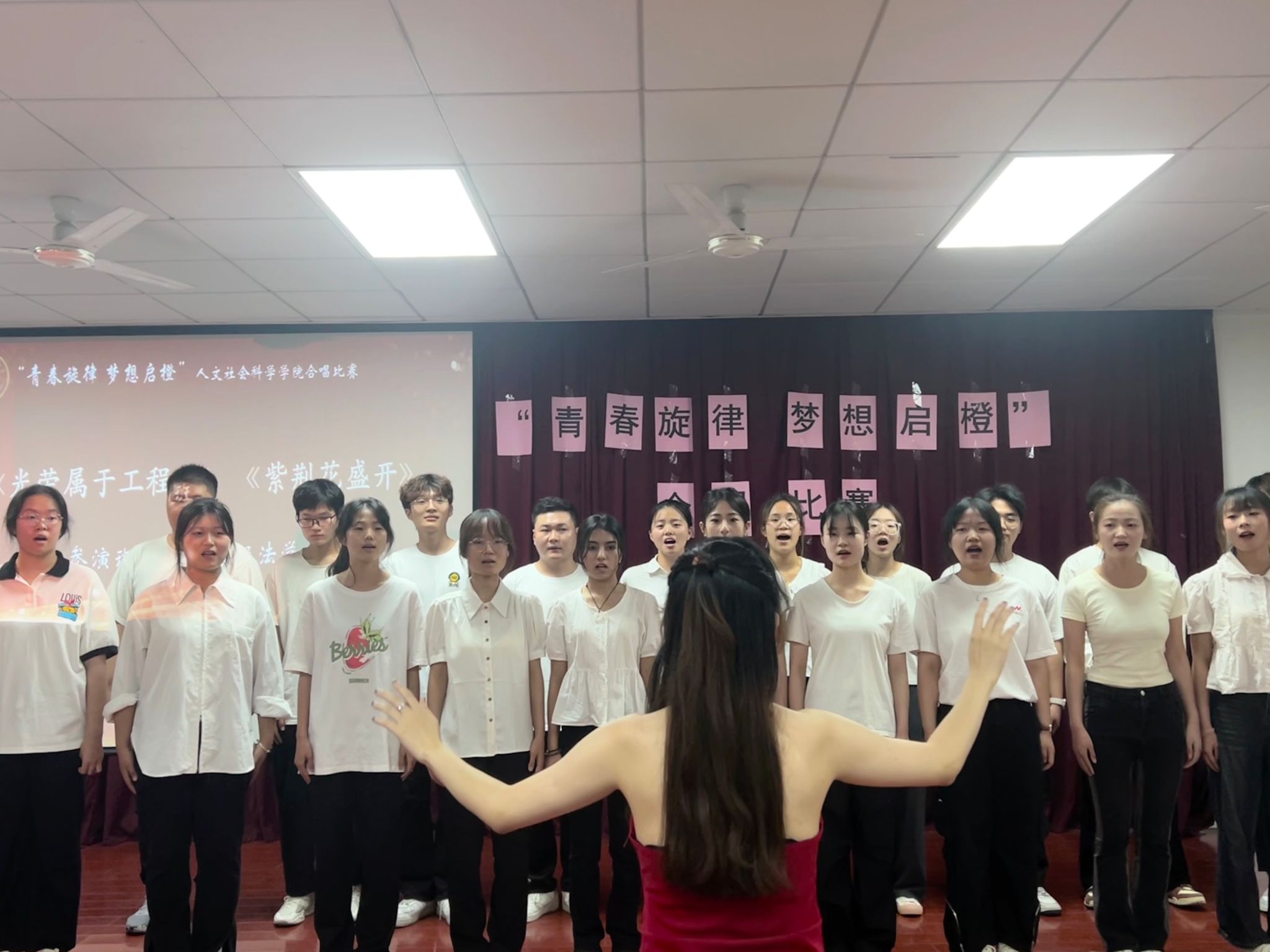 此次合唱比赛,2022级、2023级共有八支队伍参赛。从选曲到编排,从着装到队形,从领唱到指挥,每一处细节都凝结着学生们的智慧与巧思,充满了班级特色。《光荣属于工程大》《我和我的祖国》《光荣啊!中国共青团》《紫荆花盛开》《我的未来不是梦》……即使是这些熟悉的歌曲,经过同学们的演绎,唱出了自己的风格,传递着青春的激情与梦想的力量,也唱响了人文学子的豪迈与热情。