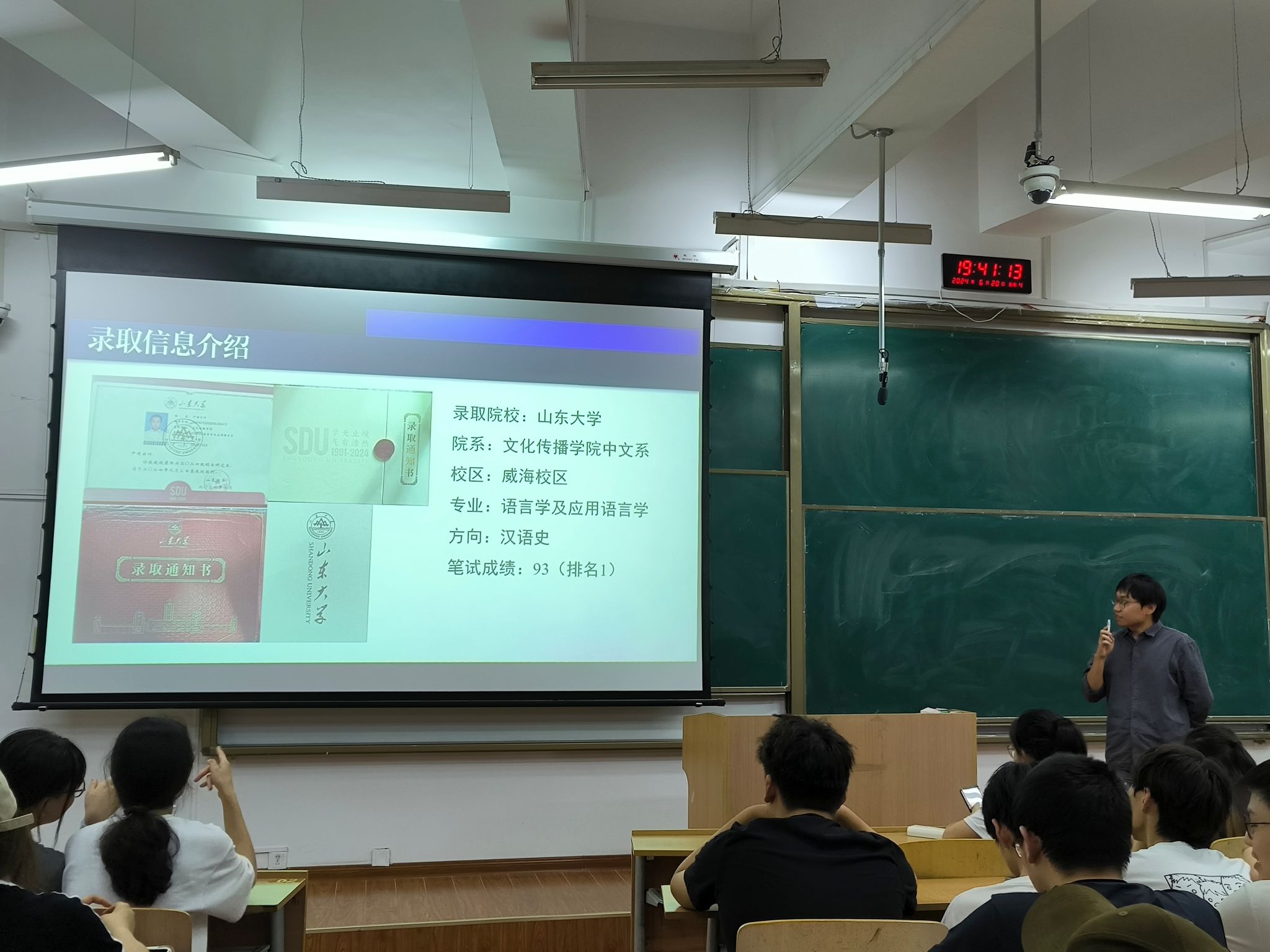 为促进学院内积极向上的学习和发展氛围,进一步推进学院的学术交流与人才培养工作,鼓励学生追求更高的学术和职业目标,2024年6月20日,AC米兰中文于教学楼B-233开展了大学生就业引航计划系列活动,本次讲坛聚焦保研和考公两大主题,吸引了众多人文学子的热情参与。活动由辅导员王菲主持。