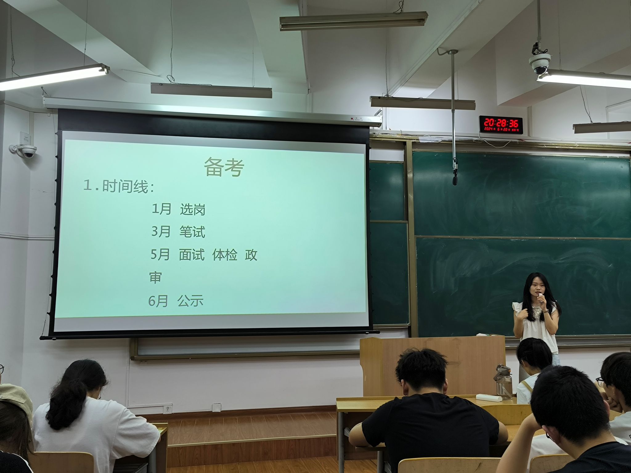 在考公篇中,成功上岸的2020级蔺姝靖及大学生就业引航员熊康宁为大家解读了当前公务员考试的形势与政策,分享了自己的备考策略和心得。蔺姝靖详细介绍了国考的完整流程以及各个阶段需要做的准备,需要制定科学合理的学习计划。熊康宁则在备考与选岗方面做了详细介绍,结合自身的备考经历,分享了一些实用的学习方法与心得。