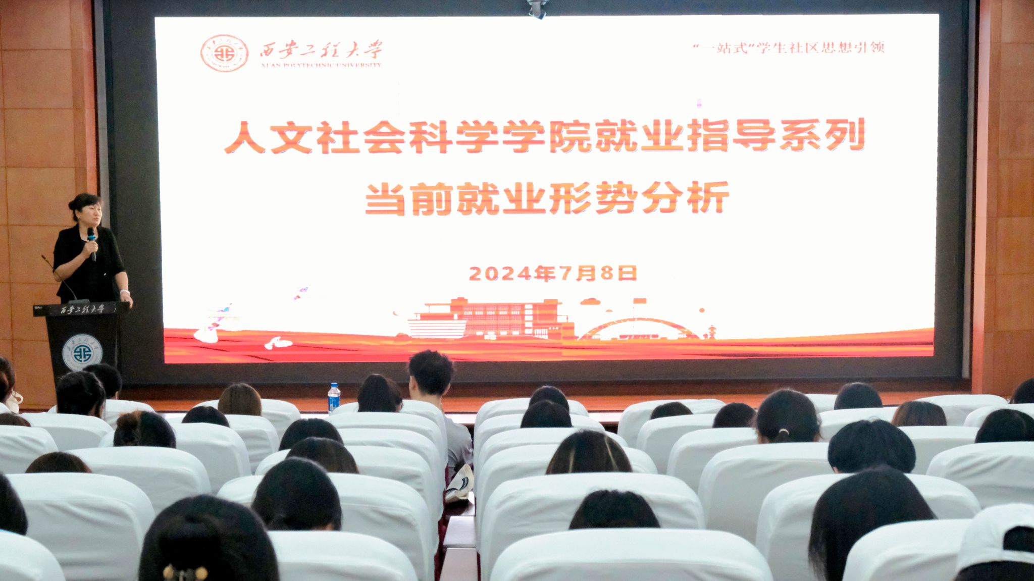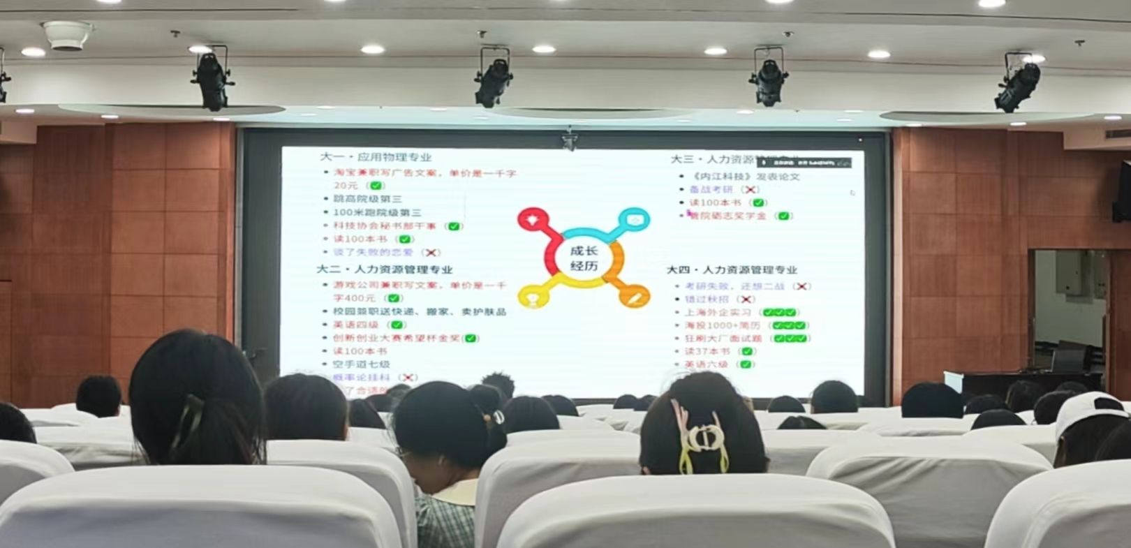 人文学院辅导员王菲主持活动。她说到,大二大三的暑假正是同学们为未来职业发展规划以及向职业目标冲刺的关键时期。希望同学们通过此次讲座能够得到启发,选择适合个人发展目标的职业道路,利用暑期朝目标做出实际努力。
