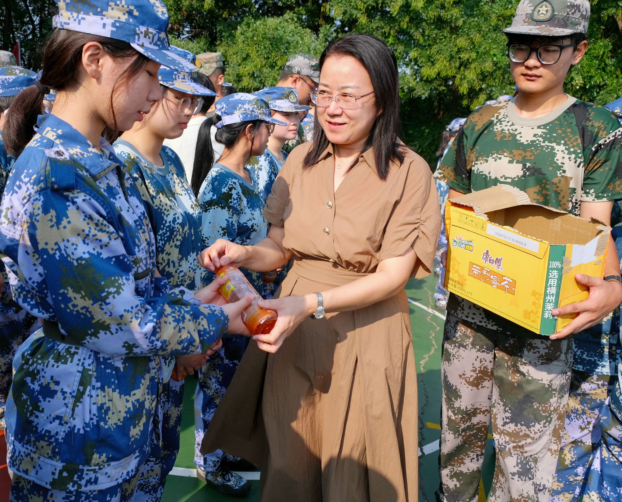 学院领导与辅导员为军训教官和2024届参训新生们分发军训慰问品,表达了学院关怀。军训慰问品不仅是物资补给,更是学院对同学们的精神鼓励。