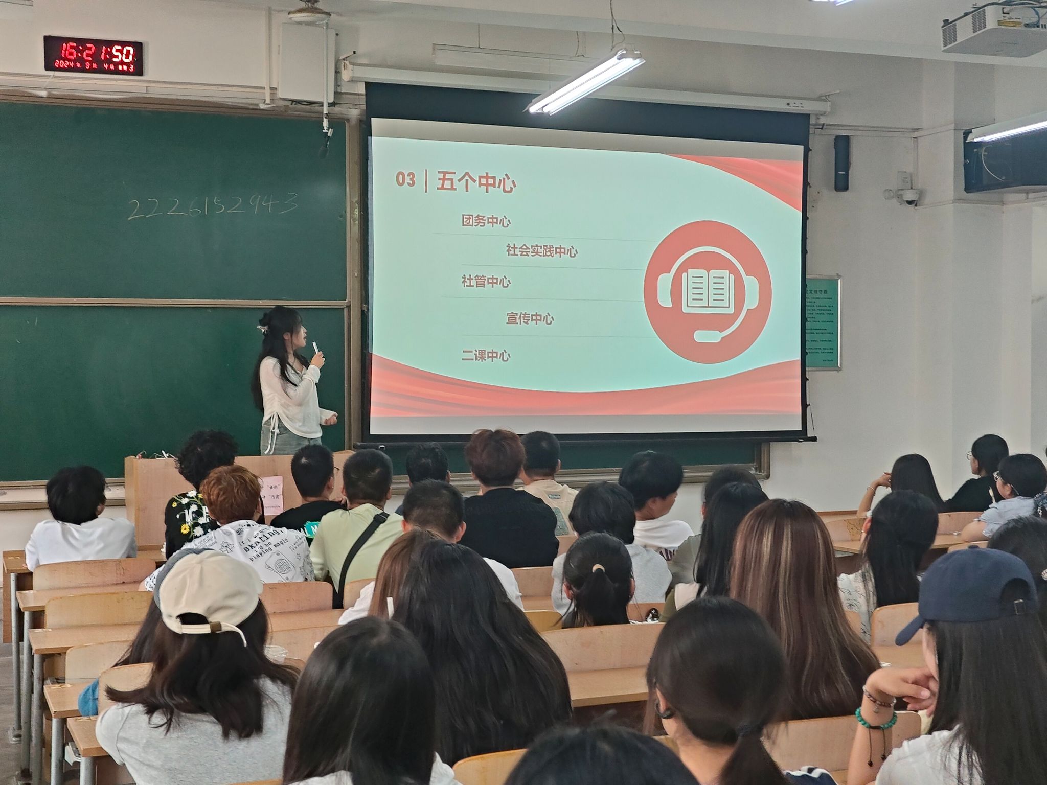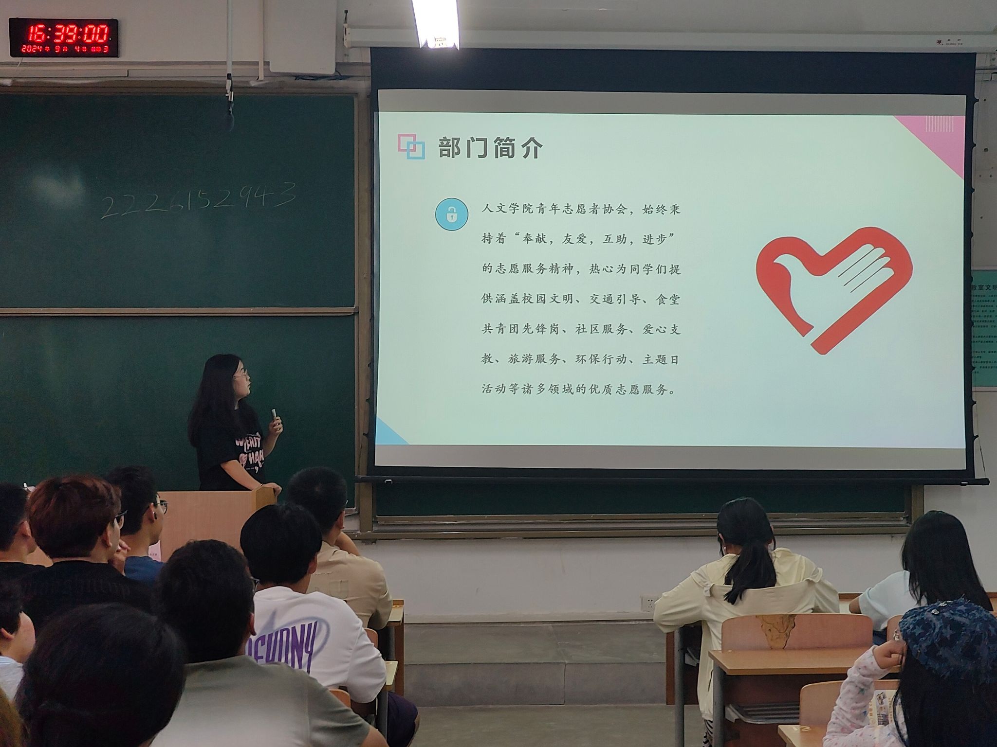 2024年9月4日下午,AC米兰中文在教学楼A-206举办团学组织及社团纳新宣讲活动。人文学院团委书记、2024级新生辅导员刘杨扬、人文学院各团学组织和社团负责人、2024级本科新生一同参与此次活动。