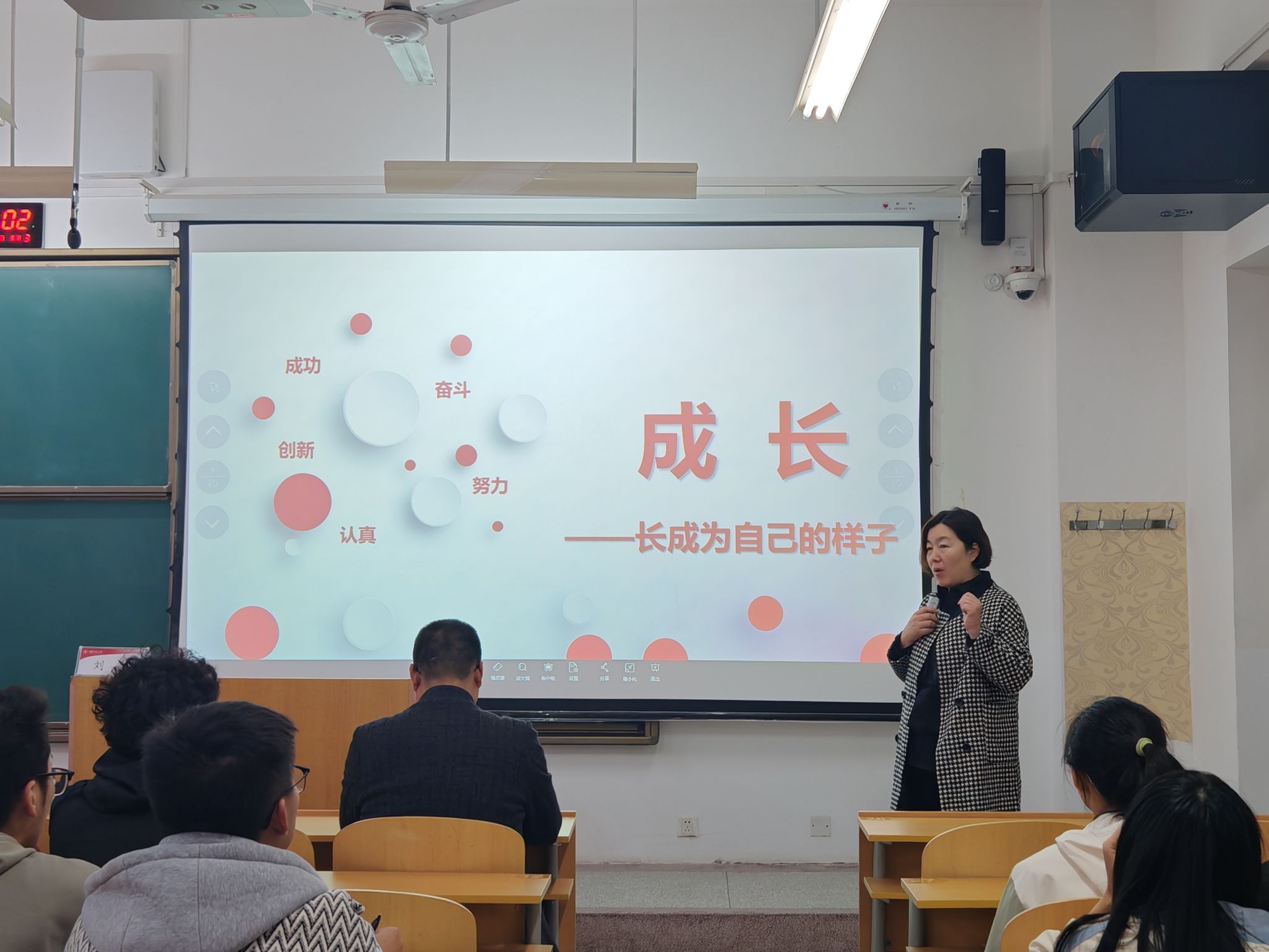 刘佳主要聚焦于“成为自己的设计师”“追逐自己的梦想”“活出自己的样子”等方面,通过讲述身边真实发生的事例以及展示生动有趣的课件内容,充分激发了新生们的积极性,促使他们深度参与到对学业规划的思索当中。讲座期间,新生们专心听讲、积极互动,刘佳老师和蔼可亲、耐心引导,与新生们默契配合,现场氛围十分良好。