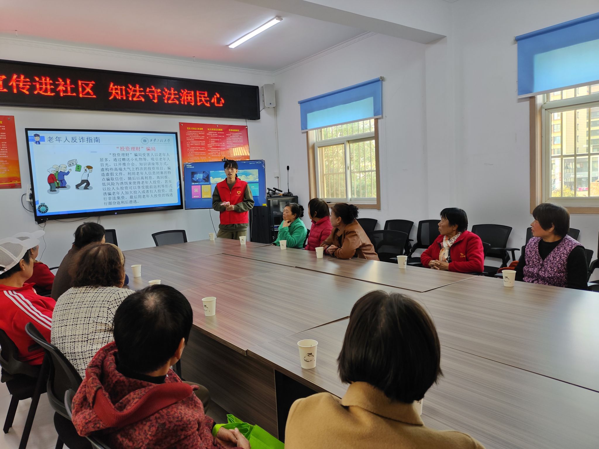 为增强社区老人们的法律意识,提高依法维权能力。11月22日,人文学院团委组织法学团支部与学院青年志愿者分会一同赴临潼区斜口街道斜口社区,开展团支部进社区系列活动之“老年人防诈骗”普法宣讲活动,为老人们讲解法律常识、谨防诈骗。