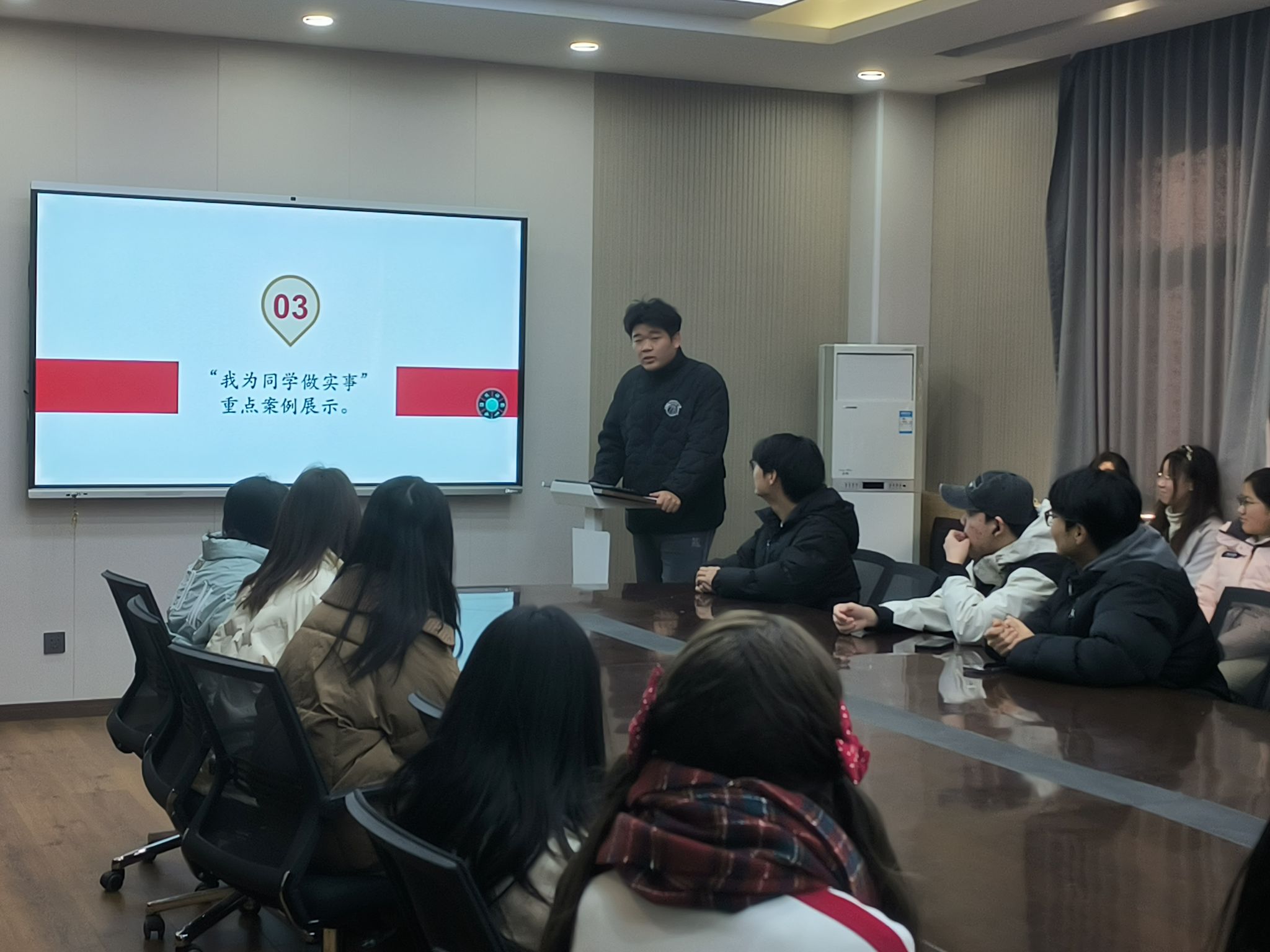 在“我为同学做实事”重点案例展示环节,学生会各个部门踊跃登台,分享了近期在服务同学、解决实际问题方面的优秀案例。这些实例充分展示了学生会干部们勇于担当、勤于奉献的精神风貌,激发了全体参会学生干部的工作热情和责任感。
