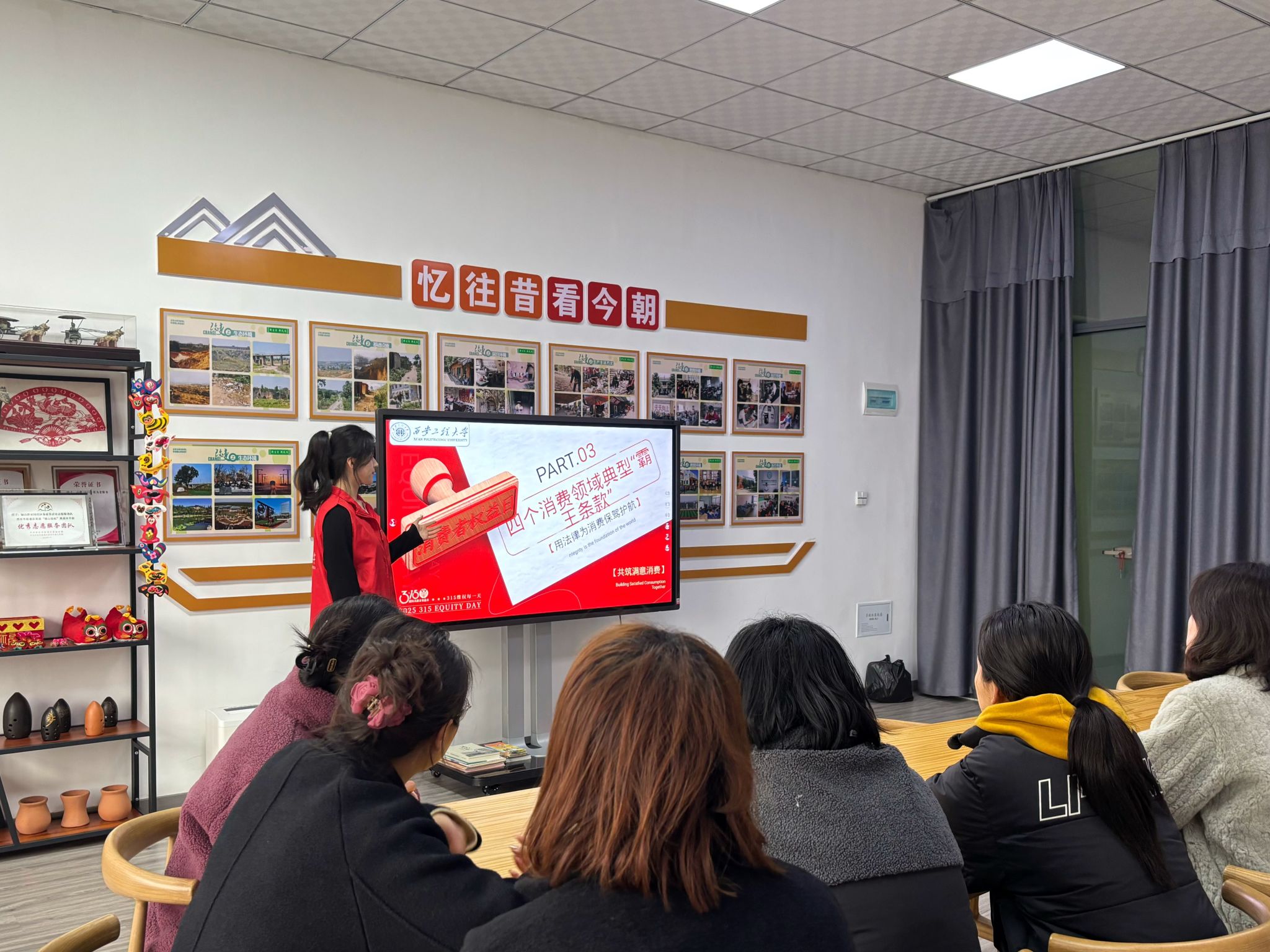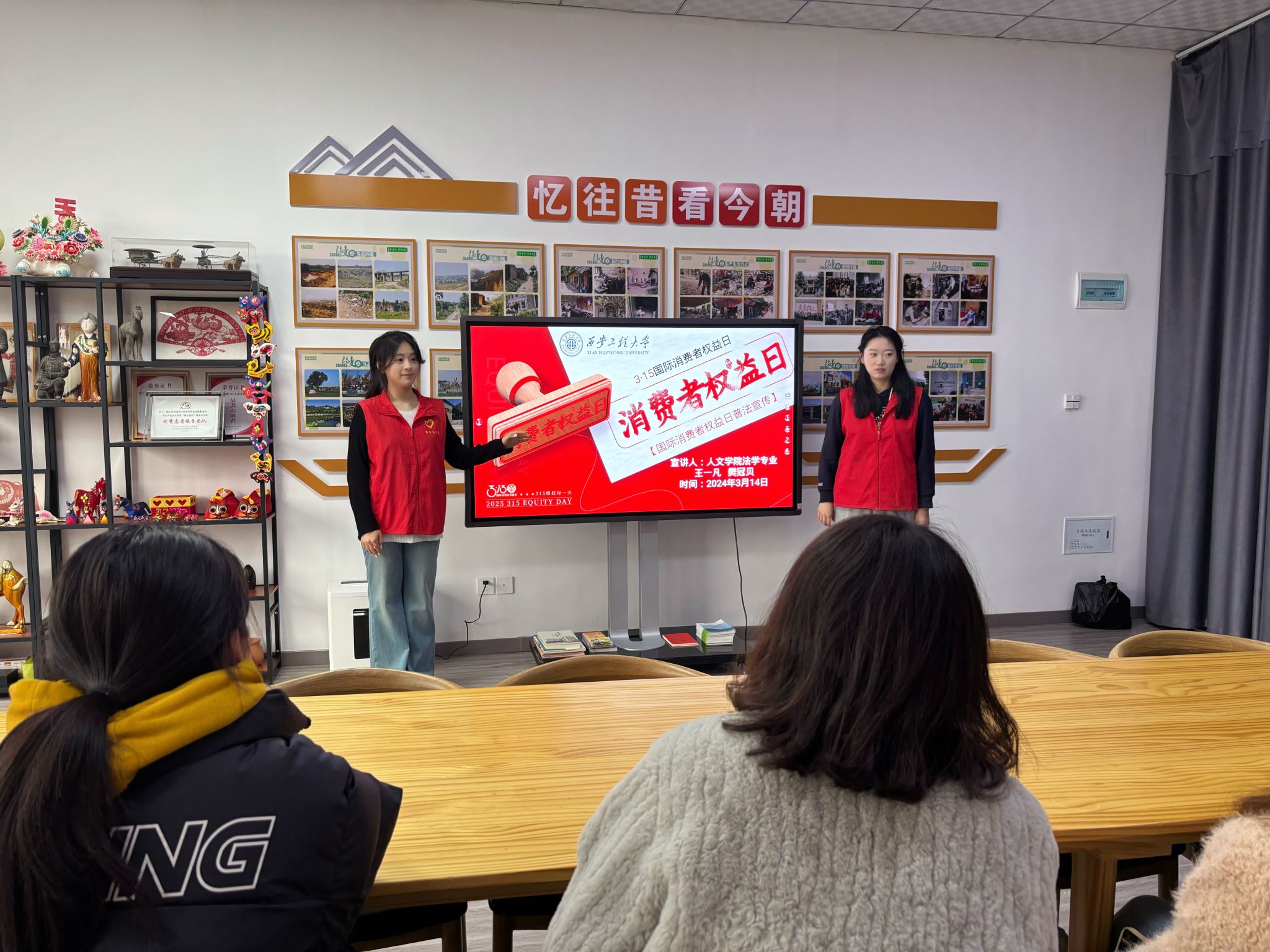 为增强社区居民法律意识,倡导理性维权理念,在2025年“3·15国际消费者权益日”到来之际,人文学院青年志愿者协会分会与法学各团支部联合,于3月14日赴临潼区骊山新家园社区开展“法治护航消费 共建和谐社区”主题普法宣传活动。本次活动由法学专业王一凡、樊冠贝同学主讲,通过案例分析、法律解读与互动问答等形式,为居民送上“家门口”的法律服务。