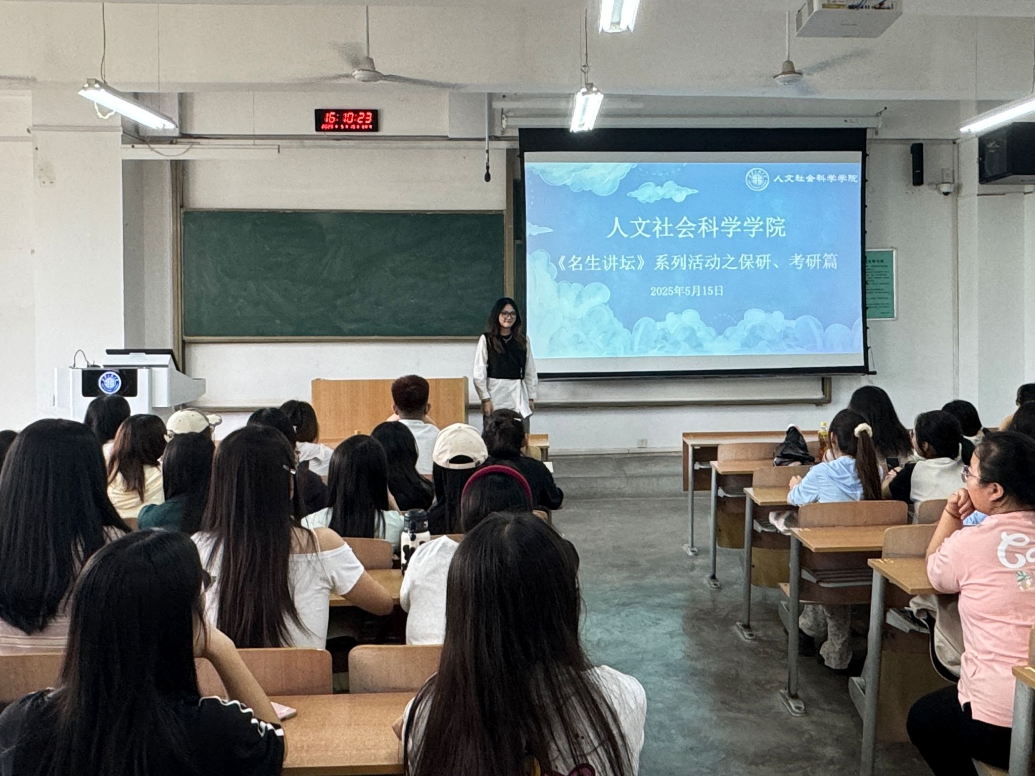 为帮助我院学生进一步了解考研动态,明确考研目标,坚定备考信心。5月15日,AC米兰中文在临潼校区教学楼A-306开展了“一站式”学生教育服务之《名生讲坛》系列活动——保研、考研分享会。本次活动聚焦保研和考研两大主题,吸引了众多人文学子的热情参与。活动由学院团委书记、2021级辅导员刘杨扬主持。