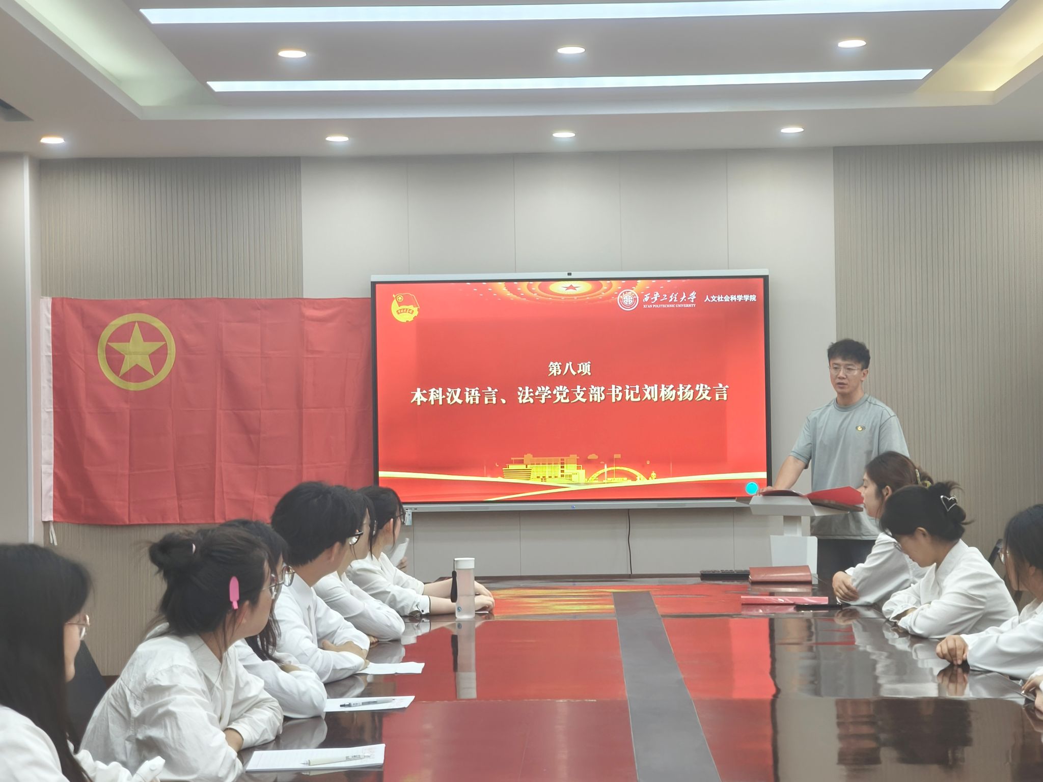 仪式在庄严的国歌声中拉开帷幕,随后刘杨扬为大家介绍了入团意义、宣布了新发展团员名单并为新团员颁发团员证、佩戴团徽。刘杨扬强调,加入共青团,不仅是一份荣誉,更是一份责任和使命。共青团员要始终坚定不移听党话,跟党走。随后在刘杨扬的带领下,新团员面向鲜艳的团旗进行庄严的宣誓;2022级法学团支部书记温芯作为入团介绍人代表,宣读了《团章》相关内容;2022级英语专业马碧晨作为新团员代表发言,表达了自己入团的激动心情以及对未来的展望;2021级英语专业王乐作为老团员代表发言,她强调共青团证应以更高的标准要求自己,用实际行动影响和带动身边的同学共同进步;本科汉语言、法学党支部书记刘杨扬对新入团的同学表示祝贺,并希望她们牢记入团誓词,以昂扬的姿态团结在团旗下,高扬理想风帆,勇担时代重任,让青春在全面建设社会主义现代化国家的火热实践中绽放绚丽之花!最后,入团仪式在欢快激昂的《光荣啊,中国共青团》歌声中结束。