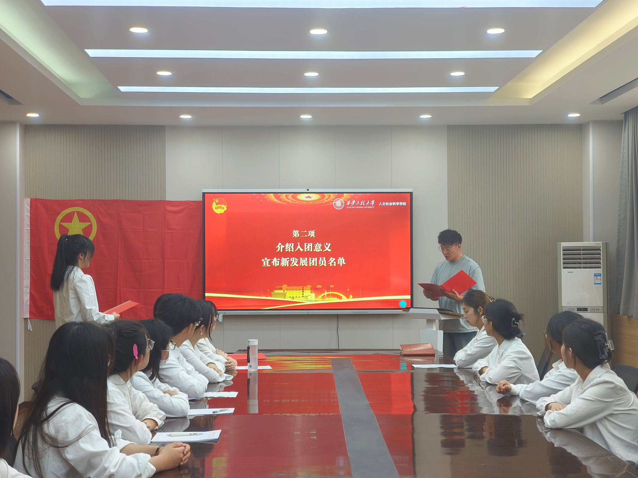 为深入学习贯彻习近平新时代中国特色社会主义思想,进一步加强共青团组织建设,培养党的助手和后备军,人文学院于5月30日在人文楼326会议室举行新发展团员入团仪式,活动由人文学院团委副书记夏舒宇主持,团委书记刘杨扬、老团员代表及全体新发展团员参加了此次入团仪式。