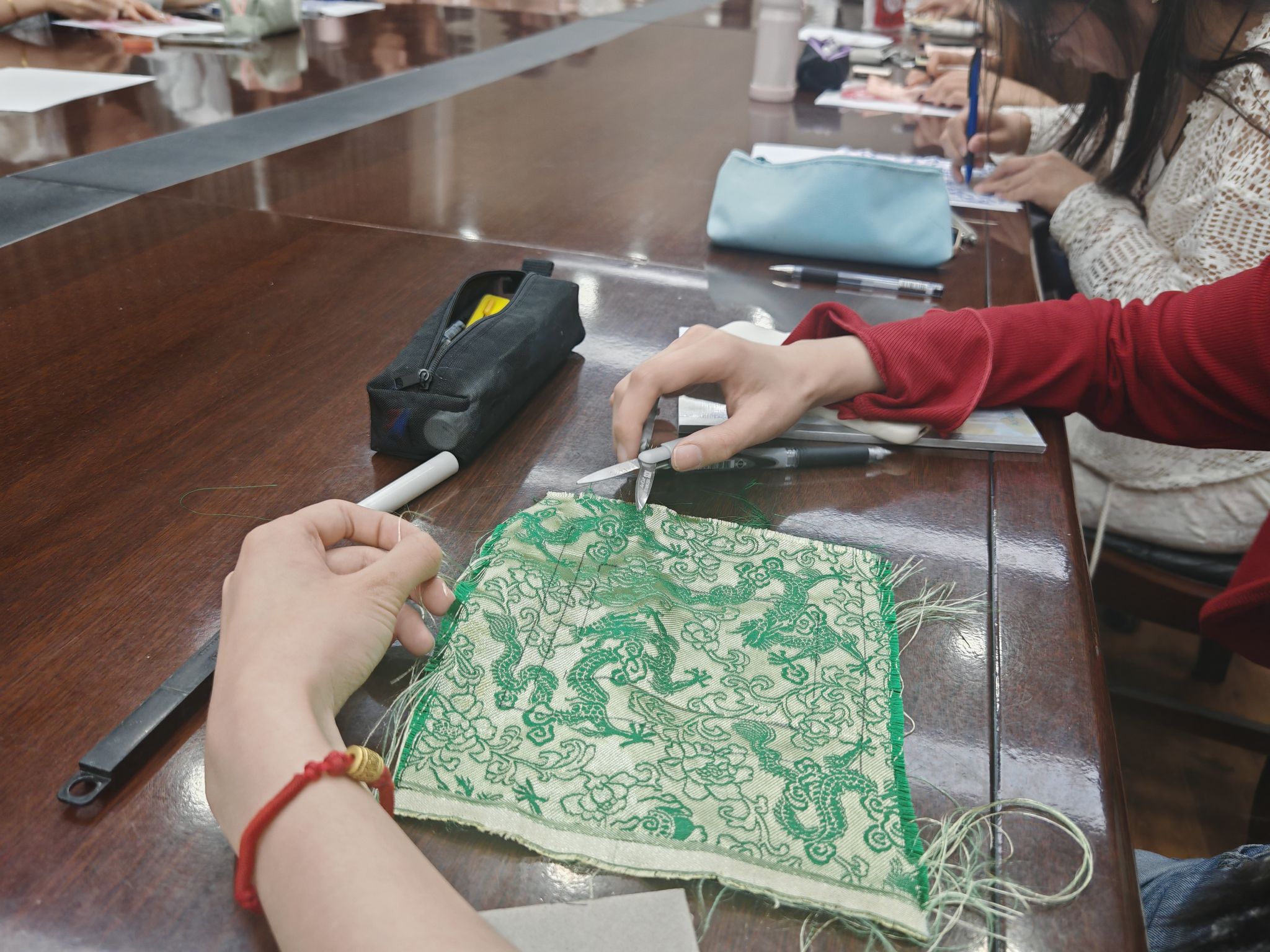 活动伊始,夏欣怡老师为同学们详细讲解了浮雕非遗银饰冰箱贴制作的相关技巧,包括布料背板制作、锡纸绘画技巧、粘贴方式以及注意事项等,鼓励大家从网络和生活中汲取灵感,在快乐中学习非遗。