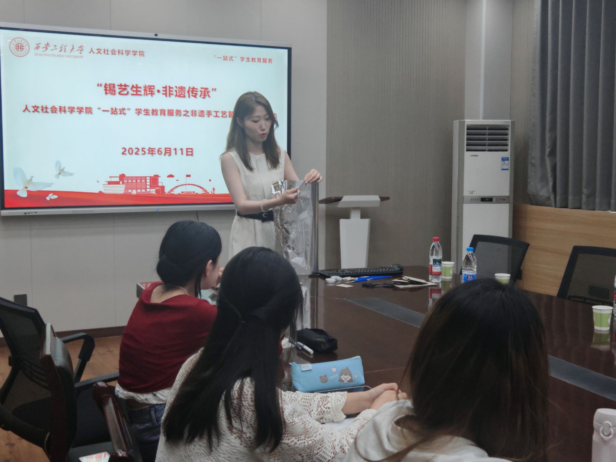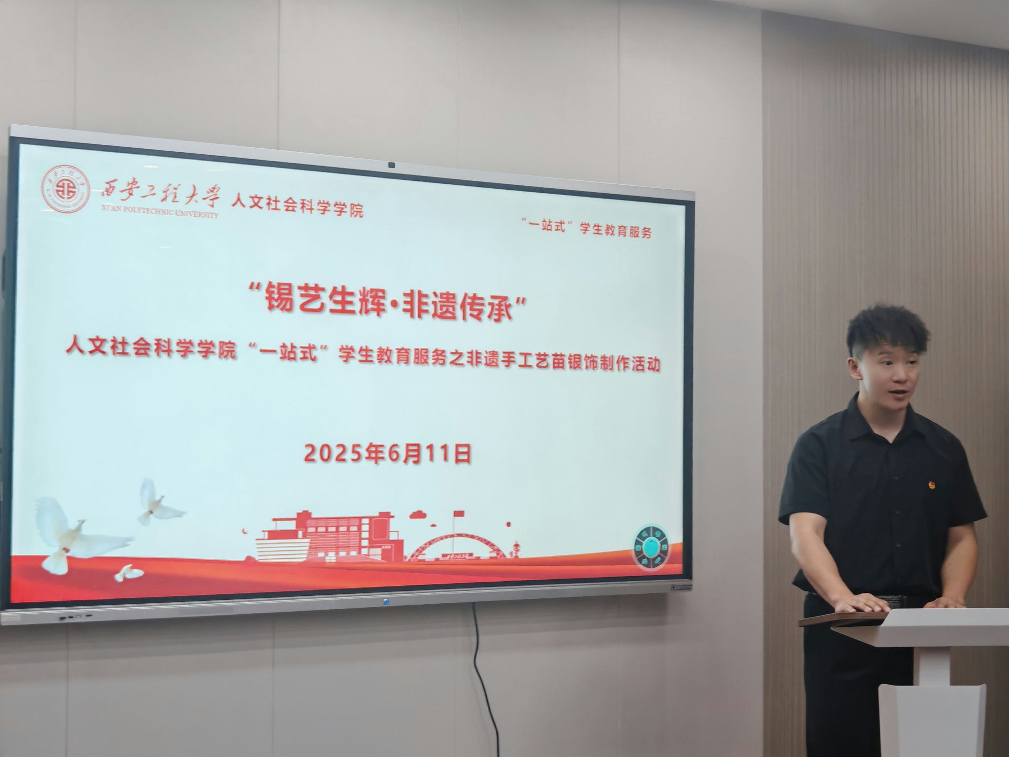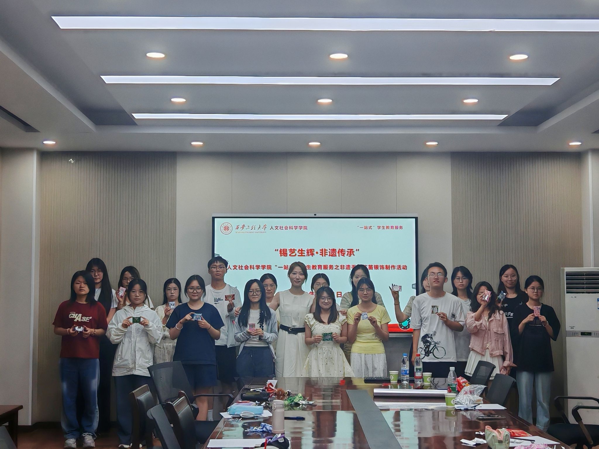 此次活动以锡纸制作苗族银饰,既能让学生低成本体验传统锻制技艺的魅力,直观感受苗族文化符号的美学特征,又能以创新实践的方式推动非遗文化的趣味传承与创造性转化。通过“一站式”学生教育服务,人文学院为学生搭建了实践与学习的平台,推动了非遗文化的传承与发展,助力传统文化在新时代焕发出新的生机与活力。(撰稿人:刘杨扬 审稿:赵立涛)