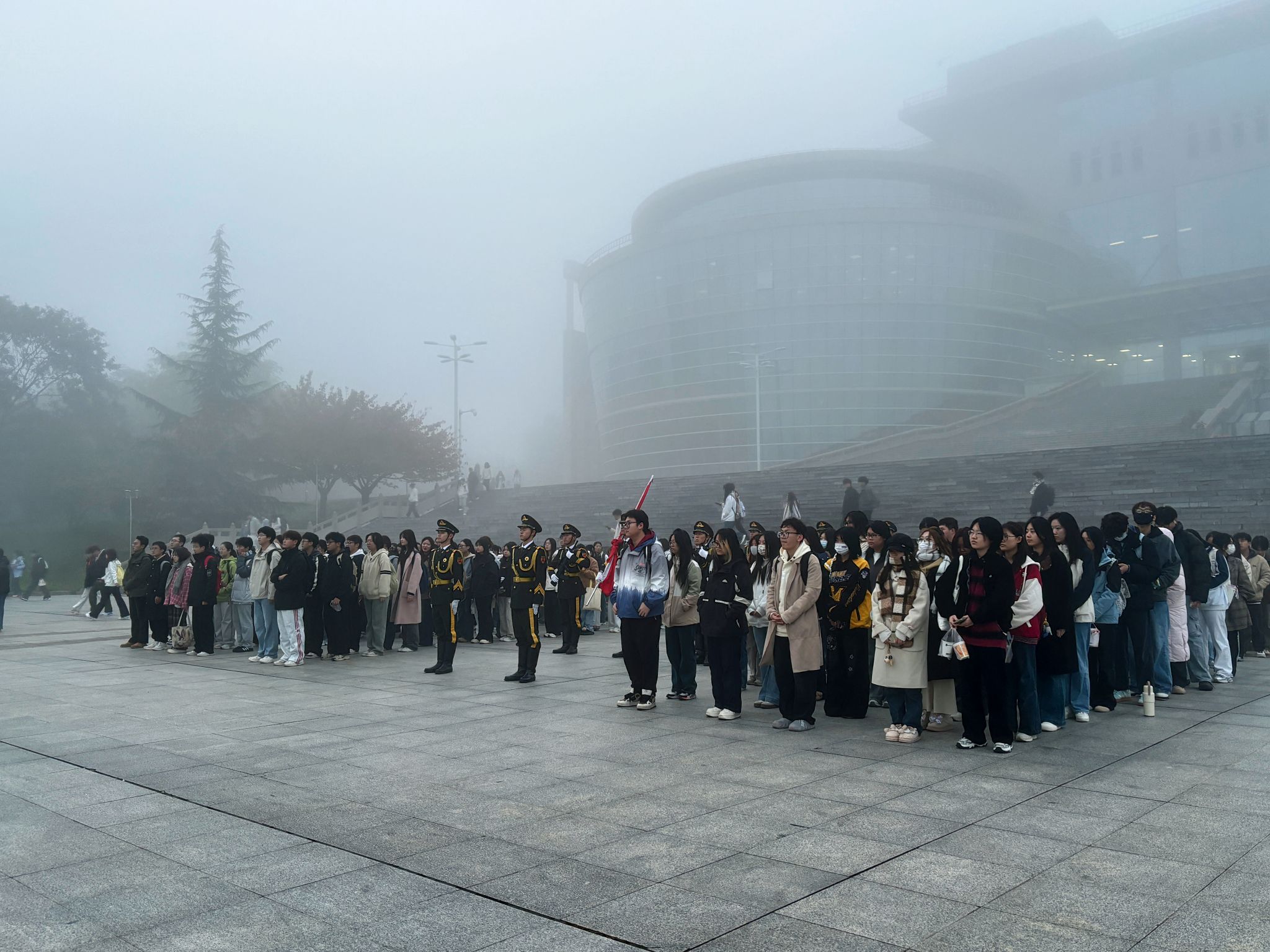 为强化学生爱国主义情怀、厚植理想信念,人文学院于10月26日在临潼校区图书馆前举行升旗仪式。学院团委书记刘杨扬及2024级、2025级全体本科生参加此次升旗。