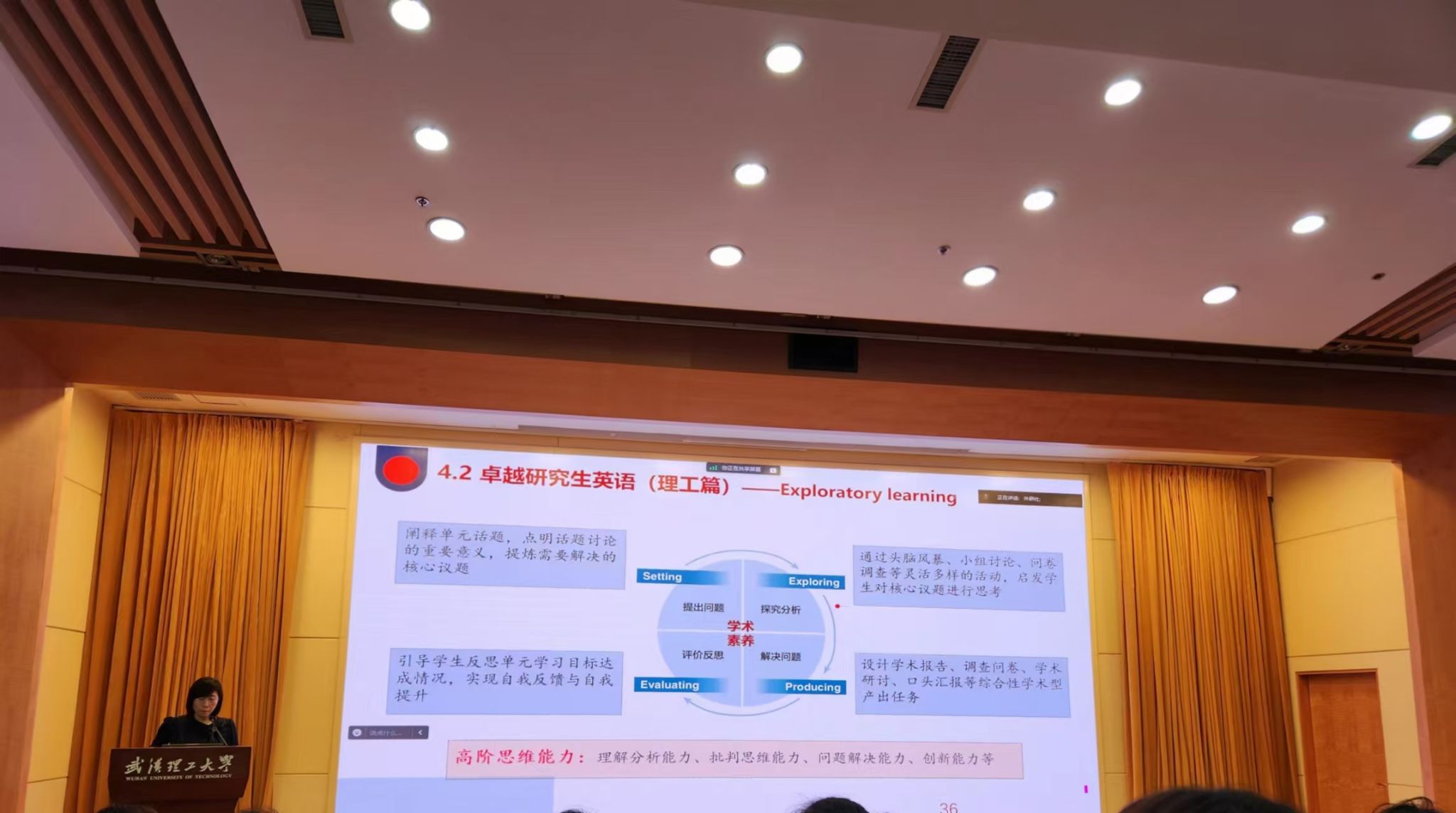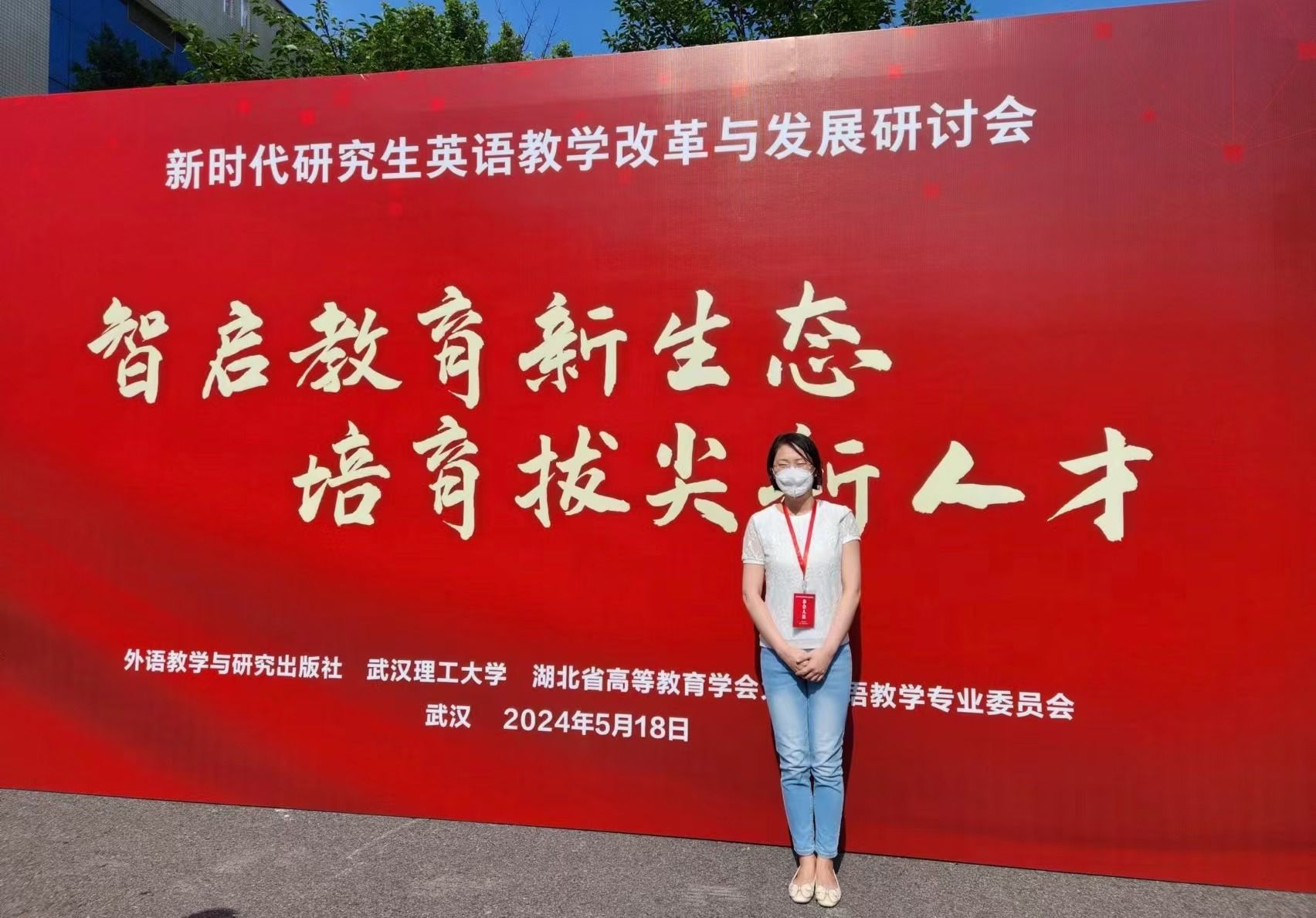 5月18日上午,人文学院研究生公共外语教学部教师韩硕在武汉理工大学参加外研社举办的新时代研究生英语教学改革与发展研讨会,会议主题为“智启教育新生态,培育拔尖新人才”。