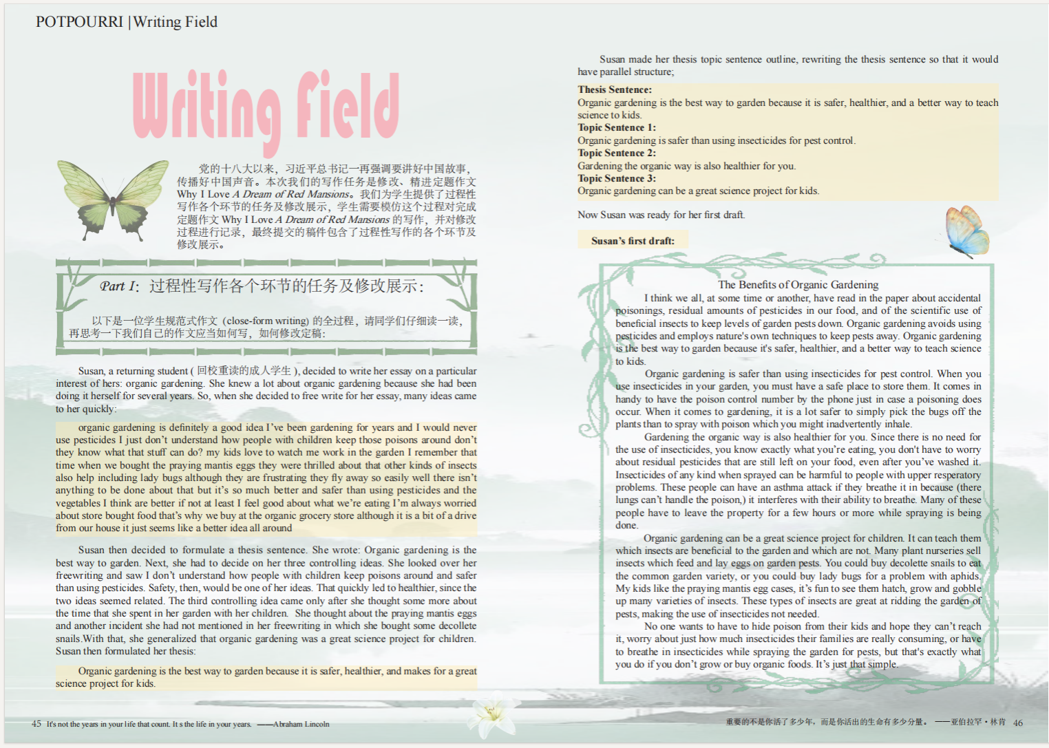 作为英语系“三全育人”导师团队重点指导的刊物之一,《POTPOURRI》未来将不断推陈出新,革故鼎新,优化栏目形式与内容,以书会友,寓教于乐,为读者提供兼具专业性与趣味性的高质量刊物。