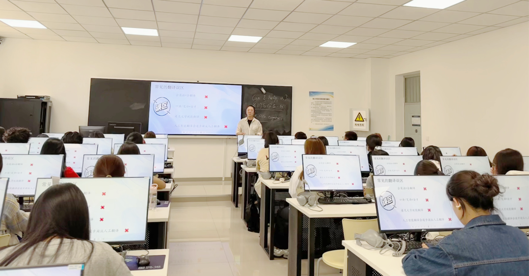 讲座伊始,张睿老师向同学们介绍了本次讲座的主讲嘉宾陈栋老师,并指出了本次活动的目的。接下来,陈栋老师向大家做了题为《语言服务的未来:英语专业学生的职业发展之路》的讲座。本次讲座由六个部分构成:常见的翻译误区、翻译专业教育概况、AI对翻译行业的影响、翻译人才评价、翻译行业的就业可能性、推荐书目。