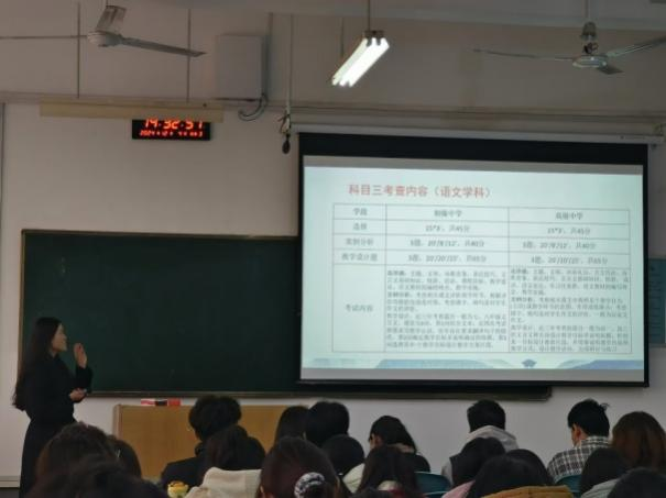 本次专题讲座不仅为同学们拨开了教资考试的重重迷雾,让大家对考试流程、要点有了全面透彻的认识,进一步理清了备考思路,明确了备考方向。更点燃了同学们投身教育事业的热情与信心,极大程度上增强了同学们的备考信心,开启属于自己的教育逐梦之旅。