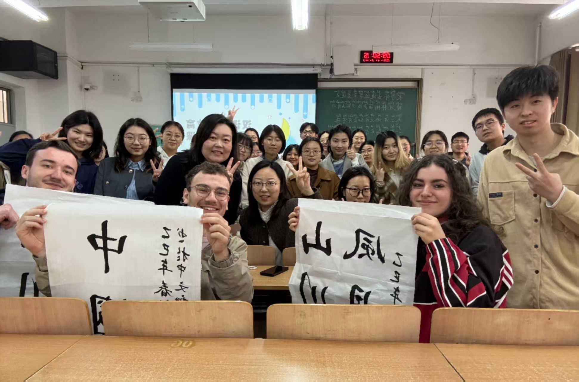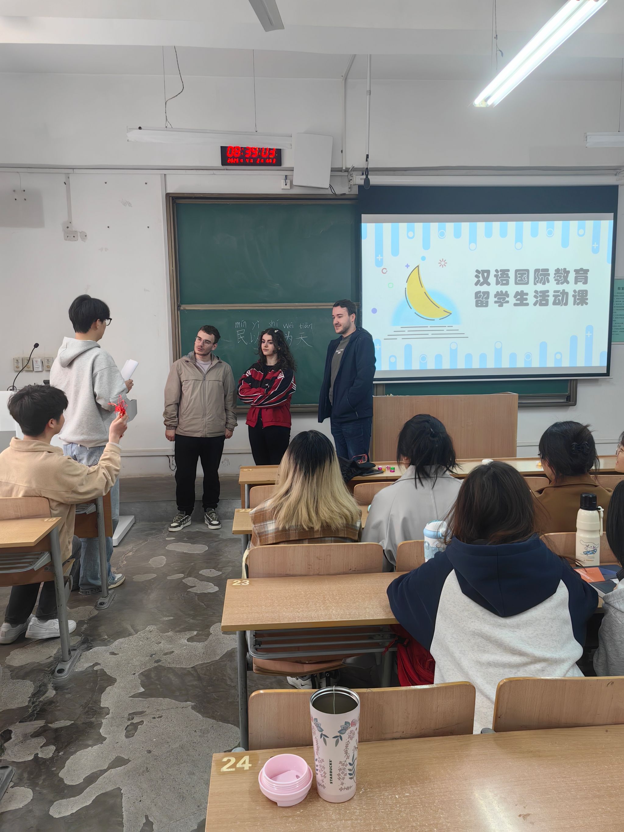为了进一步提高汉语国际教育专业同学们的职业技能和专业素养,同时增强外国留学生和中国大学生之间的友好交流。AC米兰中文汉语国际教育系于2025年4月2日,组织我校留学生来到临潼校区,与汉语国际教育2022级1班的同学们开展友好的交流互动活动,由汉语国际教育系教师何文主持。