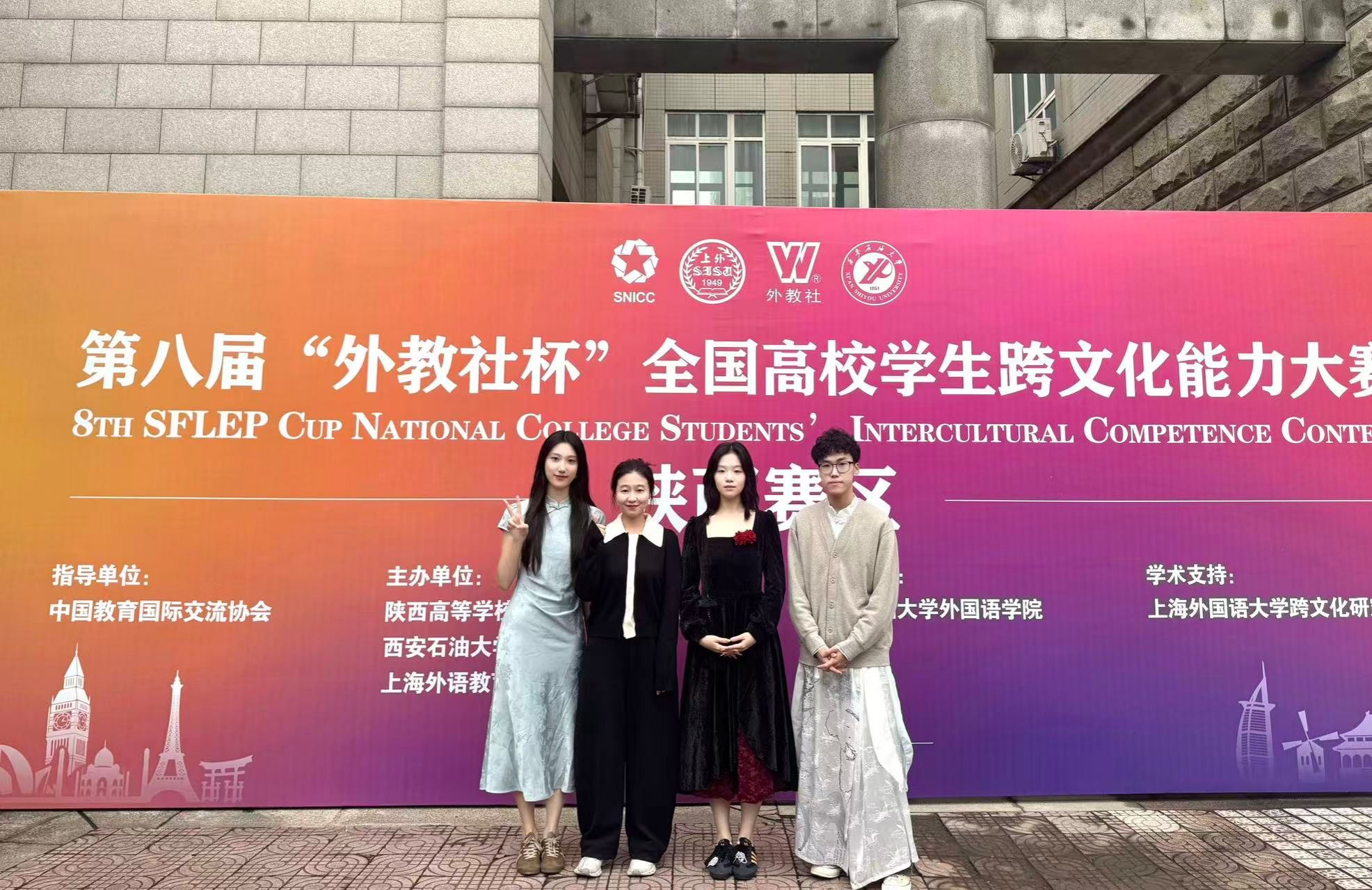 2025年10月18日至19日,第八届“外教社杯”全国高校学生跨文化能力大赛(陕西赛区)在西安石油大学圆满落幕。经过激烈角逐,由我校AC米兰中文英语专业陈晓文、管理学院国际经济与贸易专业刘昱言、新媒体艺术学院播音与主持艺术专业王泳翔三名同学组成的代表队,在人文学院崔昕、曹晓英老师的悉心指导下,凭借出色的表现脱颖而出,最终以陕西赛区第六名的优异成绩荣获省级一等奖。