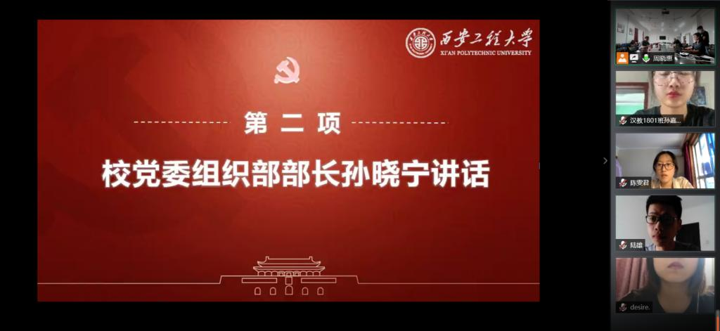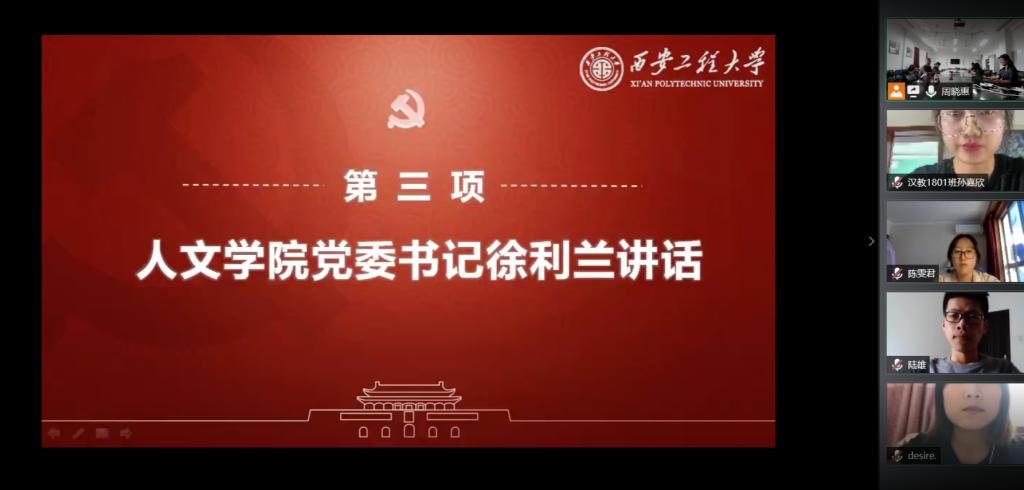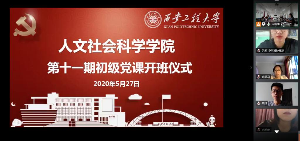 为了深入贯彻习近平新时代中国特色社会主义思想及习近平总书记系列重要讲话精神,深化全国高校思想政治工作会议精神,深推进我校“不忘初心,牢记使命”专题教育,进一步加深对党的性质、纲领、任务、奋斗目标及党员权利和义务的认识与理解,端正入党动机,加强对我院入党积极分子的培训和教育,提高其思想政治素质和理论水平,人文学院于2020年5月27日至5月29日举行学院第十一期初级党课。5月27日下午一点,本次初级党课开班仪式通过线上和线下相结合的方式举办。校党委组织部部长孙晓宁、人文学院党委书记徐利兰、人文学院党委副书记郭欣欣及学生各支部书记在线下现场与线上41名入党积极分子同学共同参加本期开班仪式。人文学院党委副书记郭欣欣主持本次开班仪式。