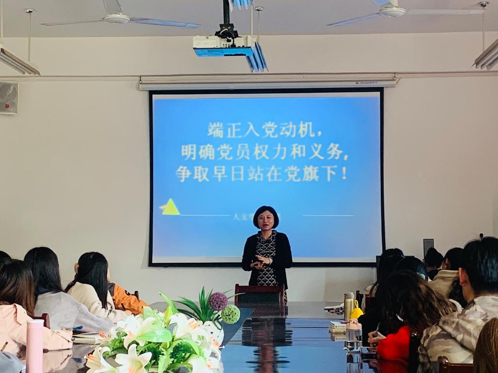 为提高入党积极分子的党性修养,宣传党内法律法规,端正入党动机,人文学院于2019年10月16日、17日、18日在临潼校区人文楼会议室开展了第十期党课培训。此次党课培训内容包括三部分:入党动机、党的历史和新时代使命、党内重要法规,分别由人文学院党委书记徐利兰,人文学院党委副书记郭欣欣以及人文学院党委委员、法学系主任金邦庆主讲。
